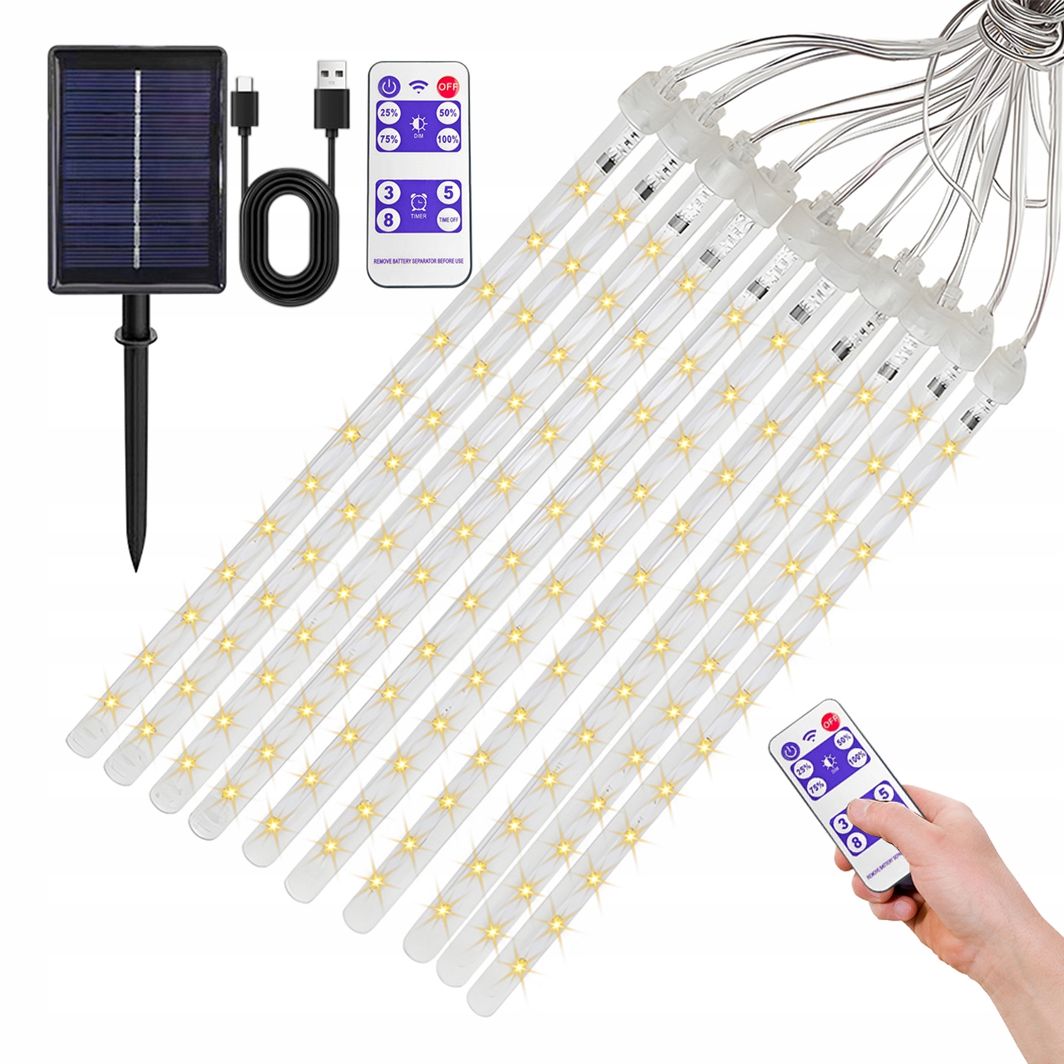 🏡 Сонячне світло з ефектом метеоритного дощу з 240 світлодіодами, дистанційним керуванням і регулюванням яскравості, ідеально підходить для різдвяного весілля ❗❗❗