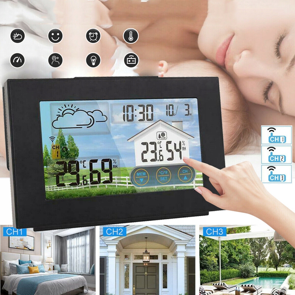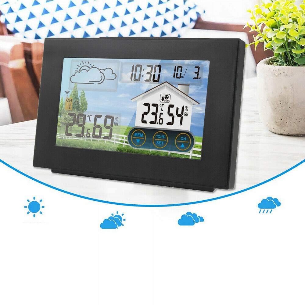 👍 та різні функції, включаючи температуру та вологість всередині та зовні, прогноз погоди, історичний 24-годинний Високі та низькі температури, дата та час (12/44 години формату). Це чудовий варіант, який допомагає підтримувати правильну температуру та вологість у будинках, офісах, теплицях, садах та інших чутливих середовищах. Прогностична станція використовує дуже вдосконалені технології виявлення погоди. Побудований інтелектуальний чіп дозволяє одночасно підключити 3 зовнішні датчики (примітка: набір включає зовнішній датчик). Таким чином ви можете покрити більшу зону виявлення у всіх кімнатах. Відстань колекції до 60 м. кут. Цифри та піктограми великі та добре організовані. Завдяки цьому проекту ви можете легко розрізнити всю необхідну інформацію на перший погляд. Це дуже корисно. Ця бездротова метеостанція невелика і не займає багато місця на столі. Елегантні кольори ідеально поєднуються з декором вашого будинку. Не пропустіть цей продукт, який зробить ваше життя більш зручним.