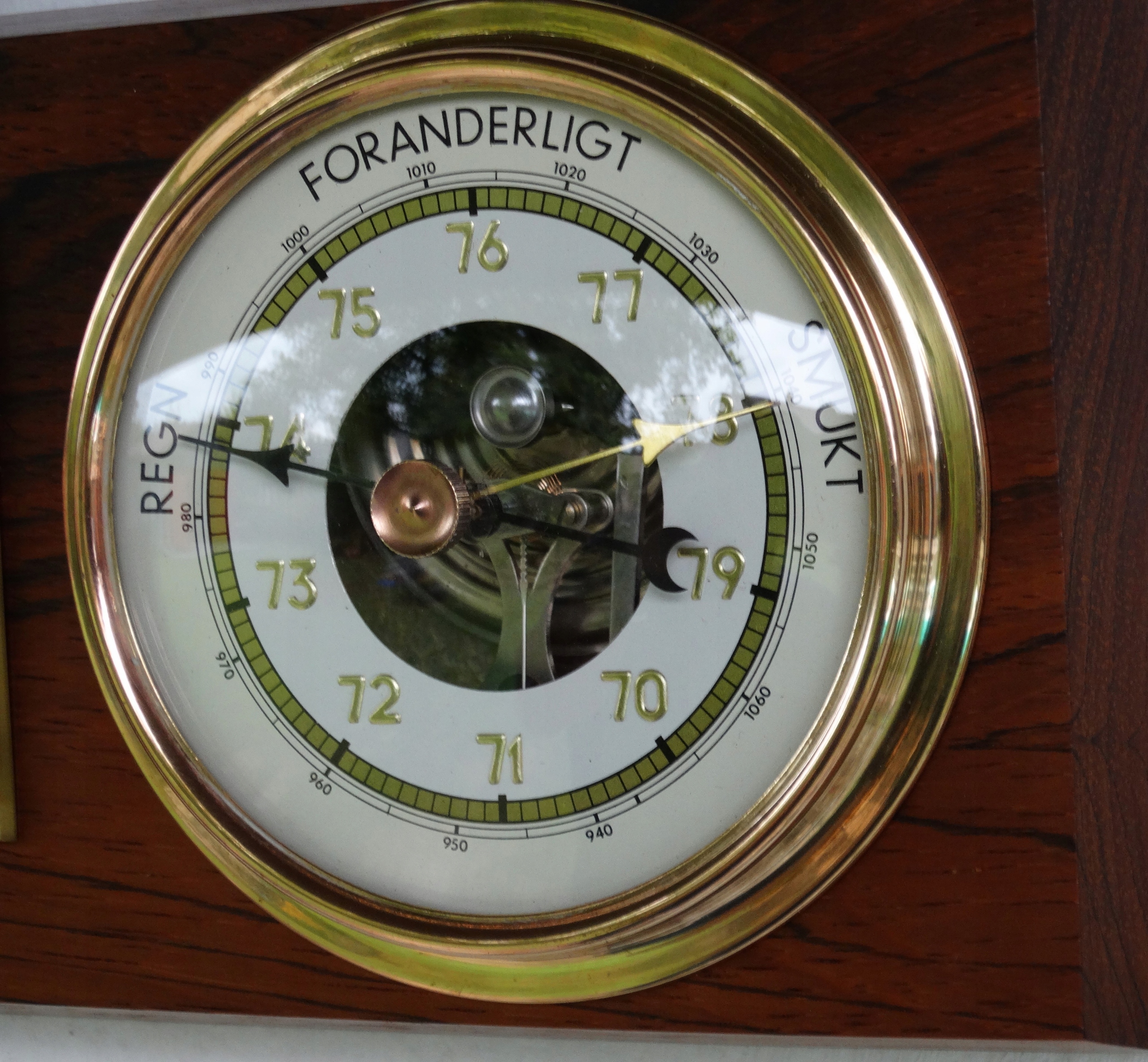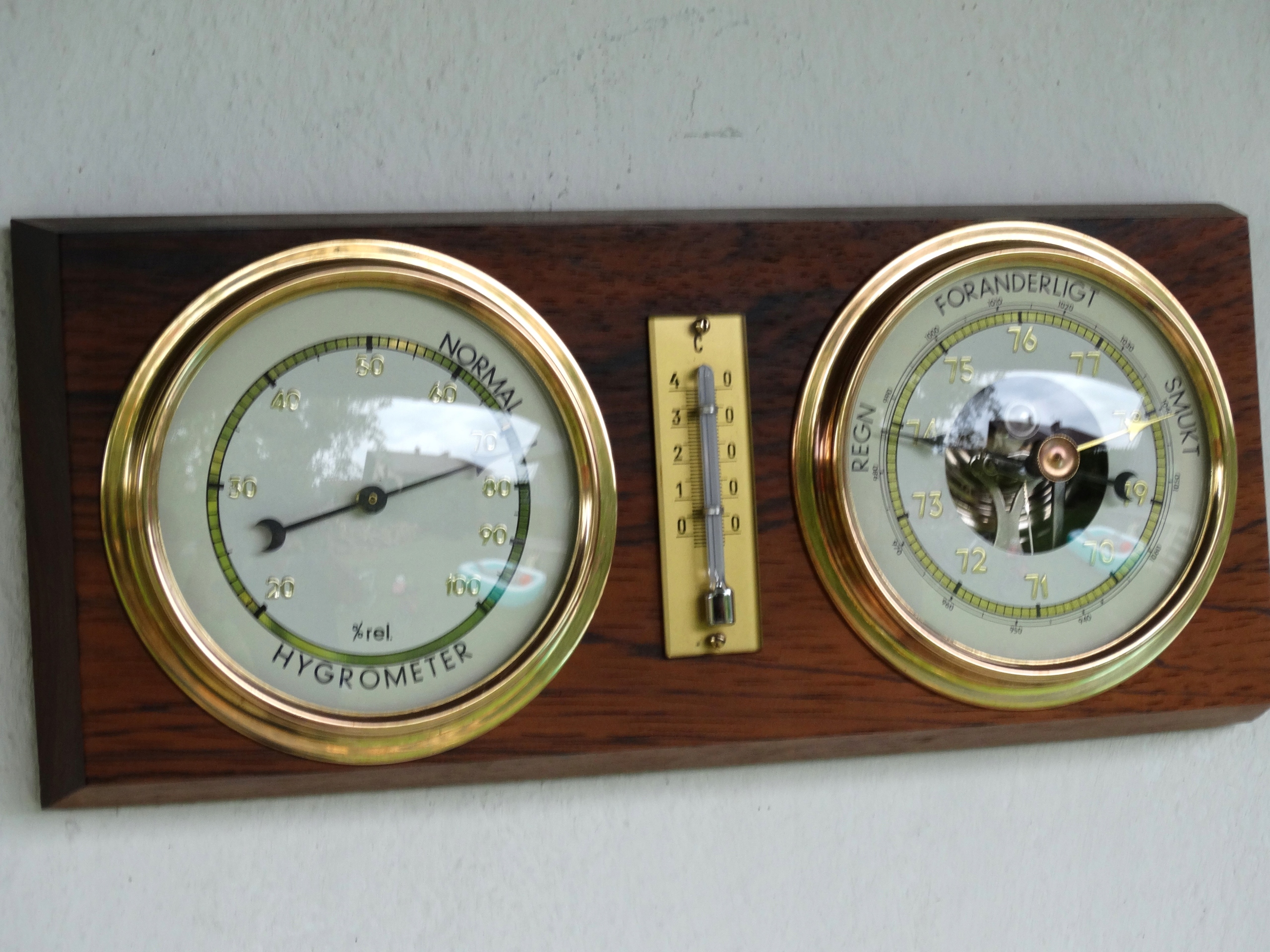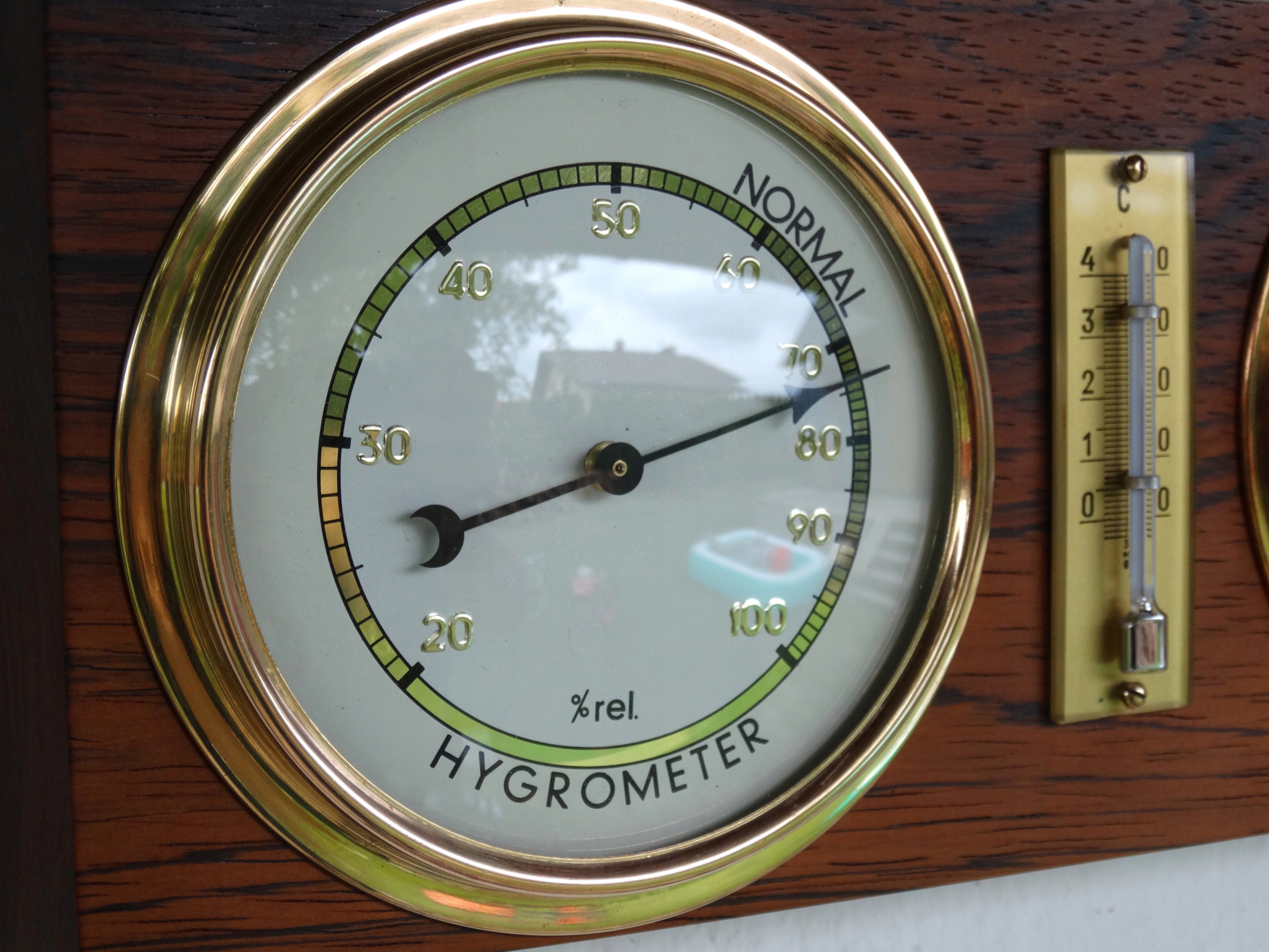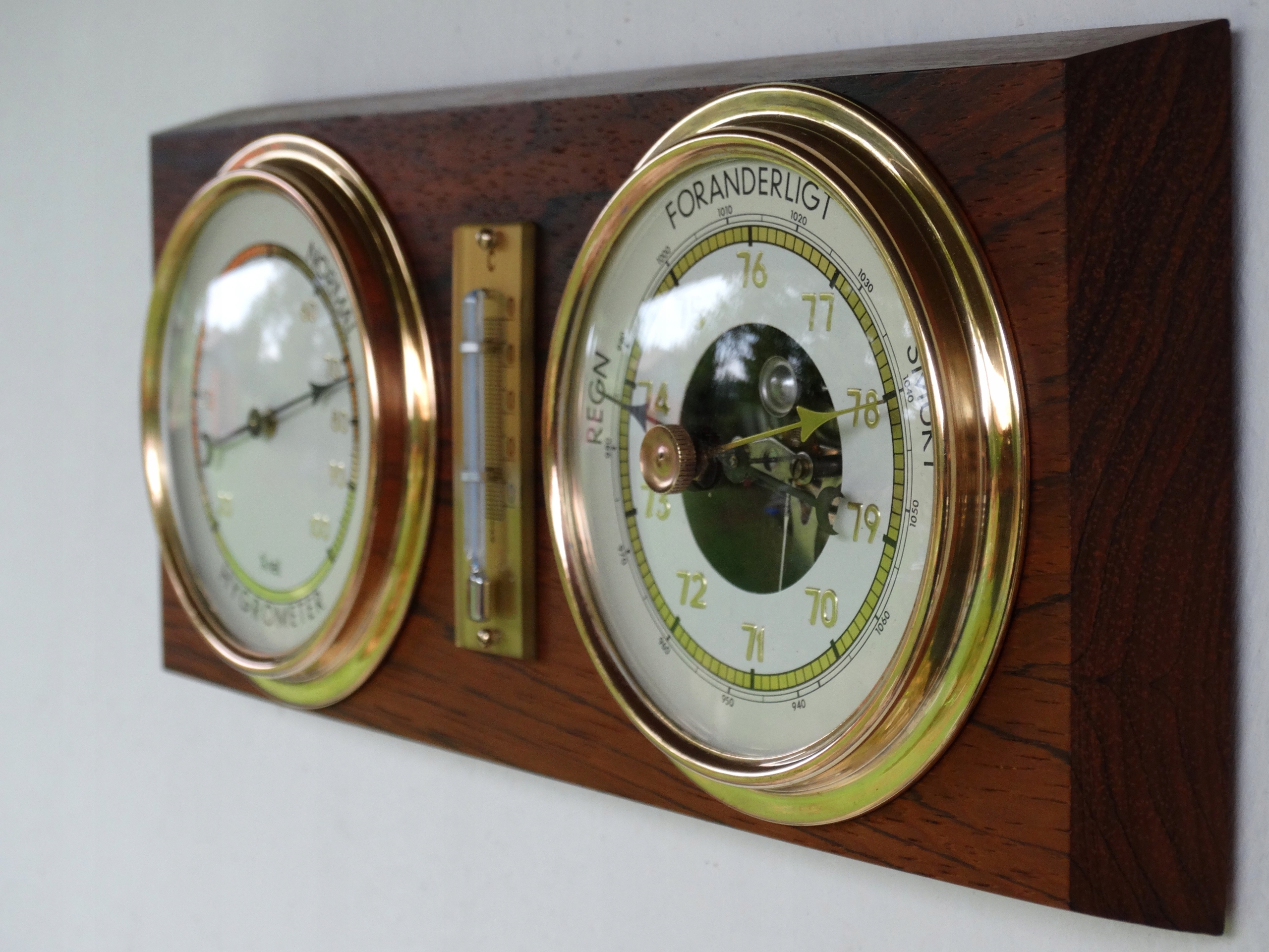 Метеостанція 3 в 1, барометр, гігрометр, термометр. Дерев'яний каркас з латунними елементами. Підходить як для сучасних, так і для класичних інтер'єрів. Має сліди нормального використання, видно на фото, ніде не пошкоджено.