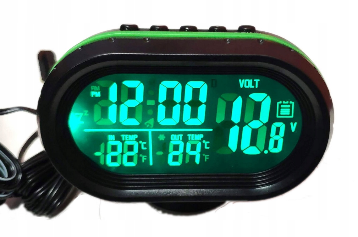 - Пристрій твердий та естетично. Li> побудована функція Низька сигналізація заряду акумулятора. Водонепроникний датчик температури дозволяє заблокувати датчик до переднього бампера, що гарантує найкраще вимірювання зовнішньої температури під час руху та зупинки. Підсвічування зеленого/червоного (необхідне підключення до сигаретної легшої розетки). Специфікація: