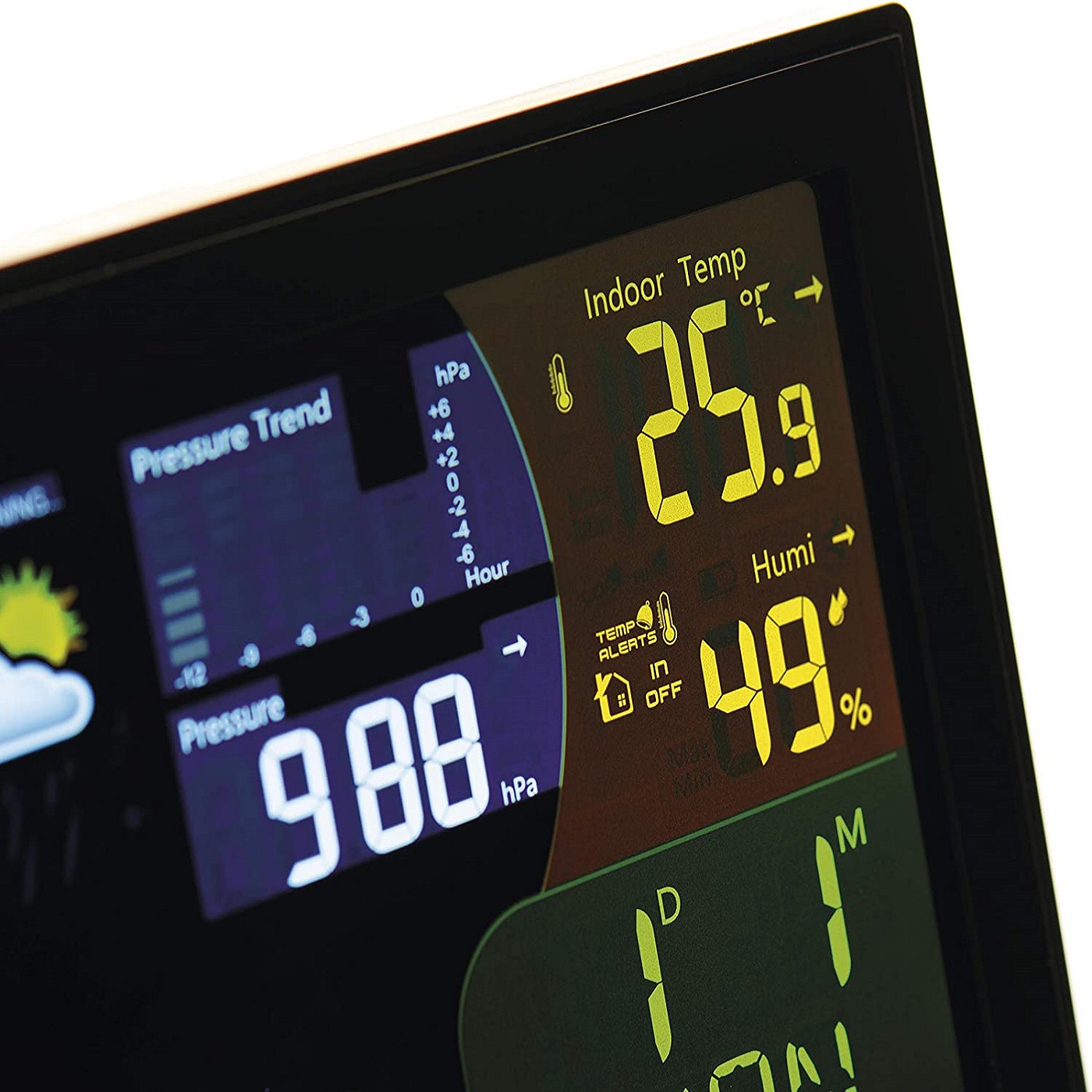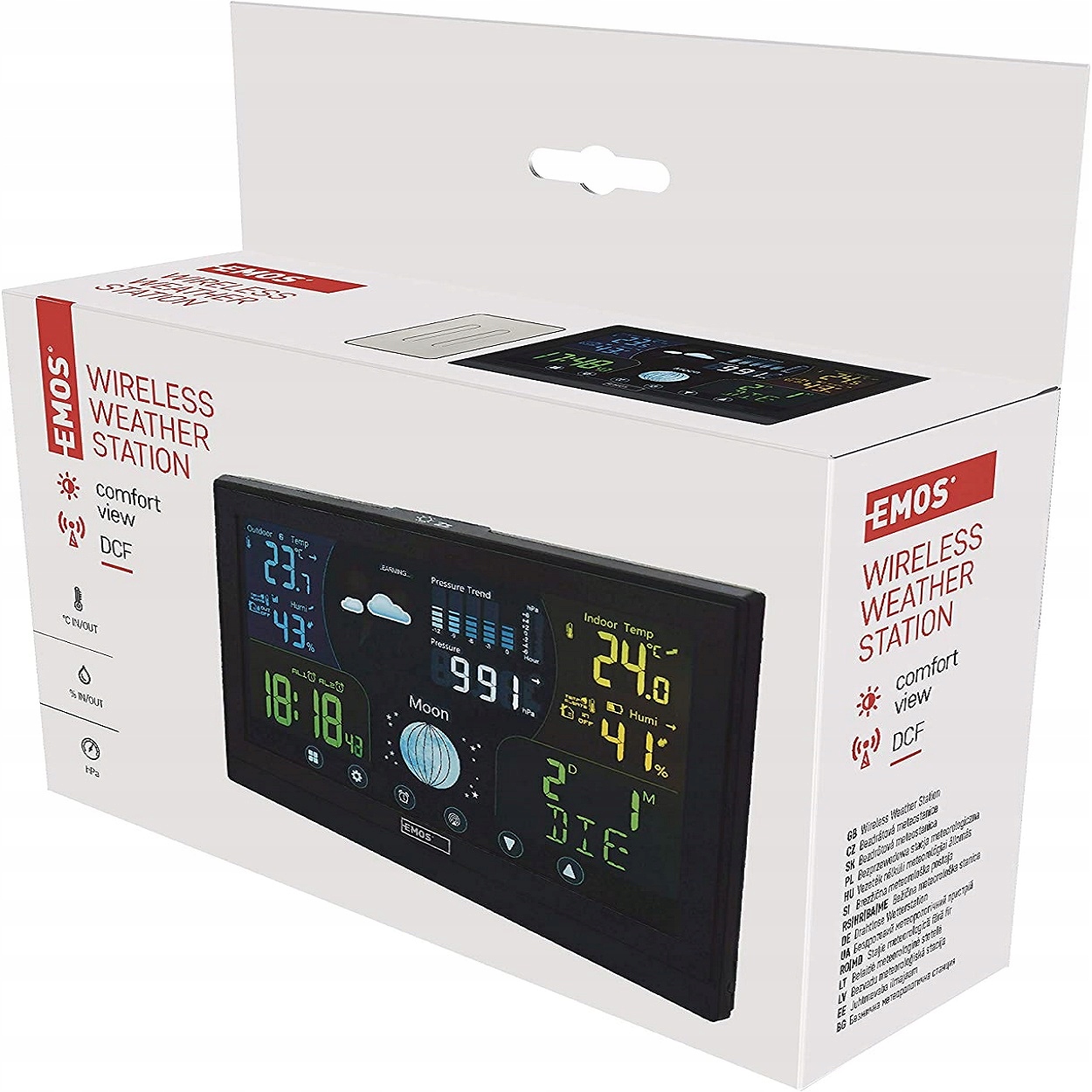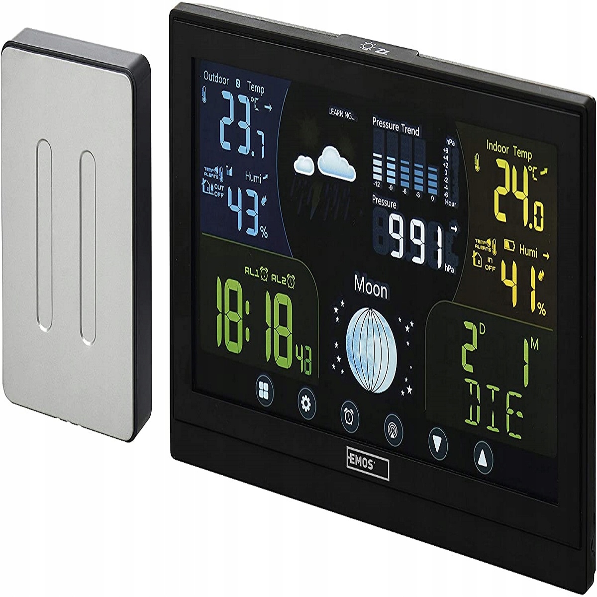 ✅EMOS E6018 Бездротова метеостанція з зовнішнім датчиком і кольоровим сенсорним дисплеєм + блок живлення, 13 функцій: термометр, гігрометр, барометр, прогноз погоди, радіогодинник