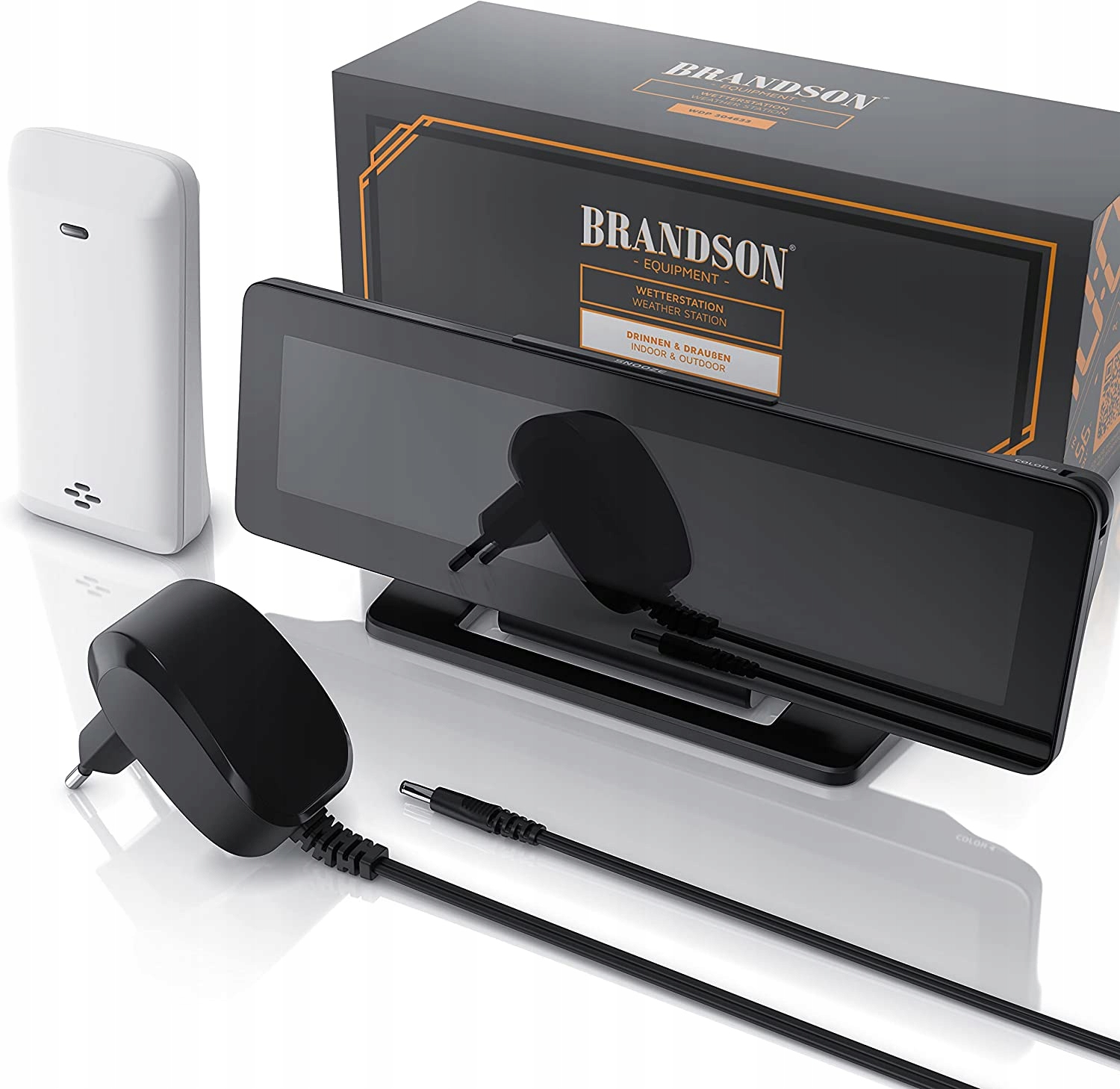 Метеостанція Brandson є елегантним пристроєм із 256-широкоформатним дисплеєм, який показуєтемпературу, вологість повітря , і виконуючи роль будильника і годинника. Регульована яскравість дисплея, точний сигнал DCF, три режими освітлення, чотири режими кольорів, функція попередження про мороз, автоматичний перехід на літній час і резервне живлення від батареї є додатковими функціями. Налаштування кольору та кнопка «Зовнішня температура» додають естетичної привабливості, роблячи цю станцію не лише джерелом інформації про погоду, але й елементом дизайну інтер’єру.