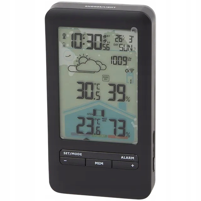 - Метеостанція з вбудованим гігрометром дозволяє контролювати та підтримувати належний мікроклімат у приміщенні чи на вулиці.