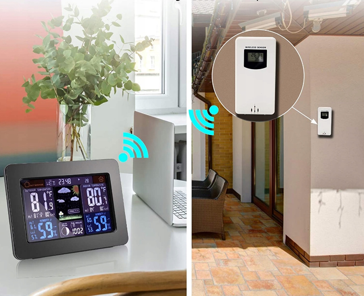 Пристрій містить спеціальний зовнішній датчик з радіусом дії до 60 метрів, завдяки якому можна вимірювати як у приміщенні, так і на вулиці. Надані значення дуже точні та постійно оновлюються.