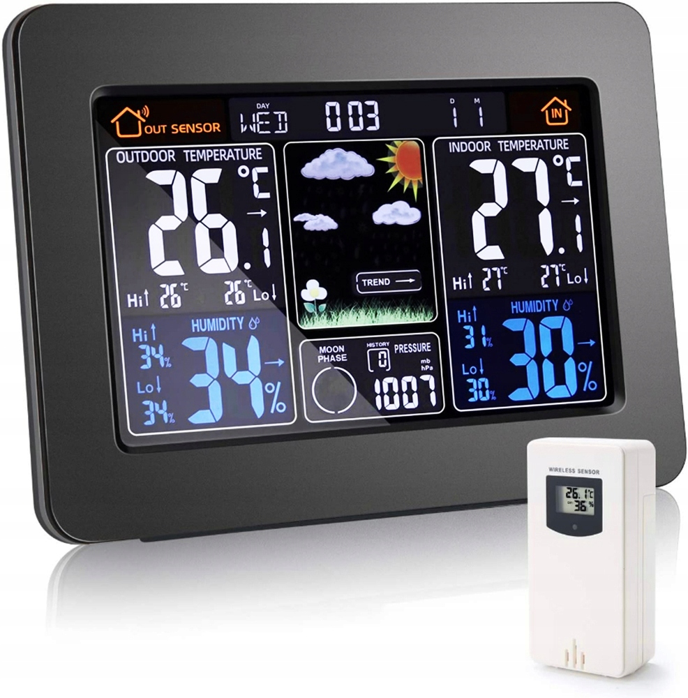 Наш продукт — остання модель функціональної метеостанції. Станція вимірює такі величини, як: температура, вологість і тиск.