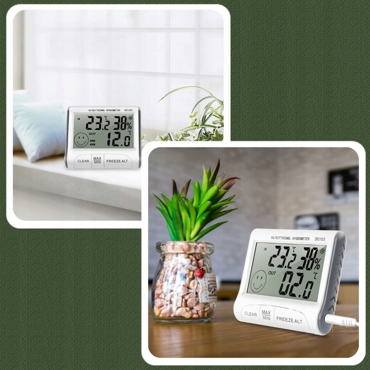Термометр використовується для вимірювання температури та вологості повітря. Ми можемо розмістити його будь-де, де захочемо вимірювати ці показники. Ідеально підходить для будинків, офісів і промислових підприємств.