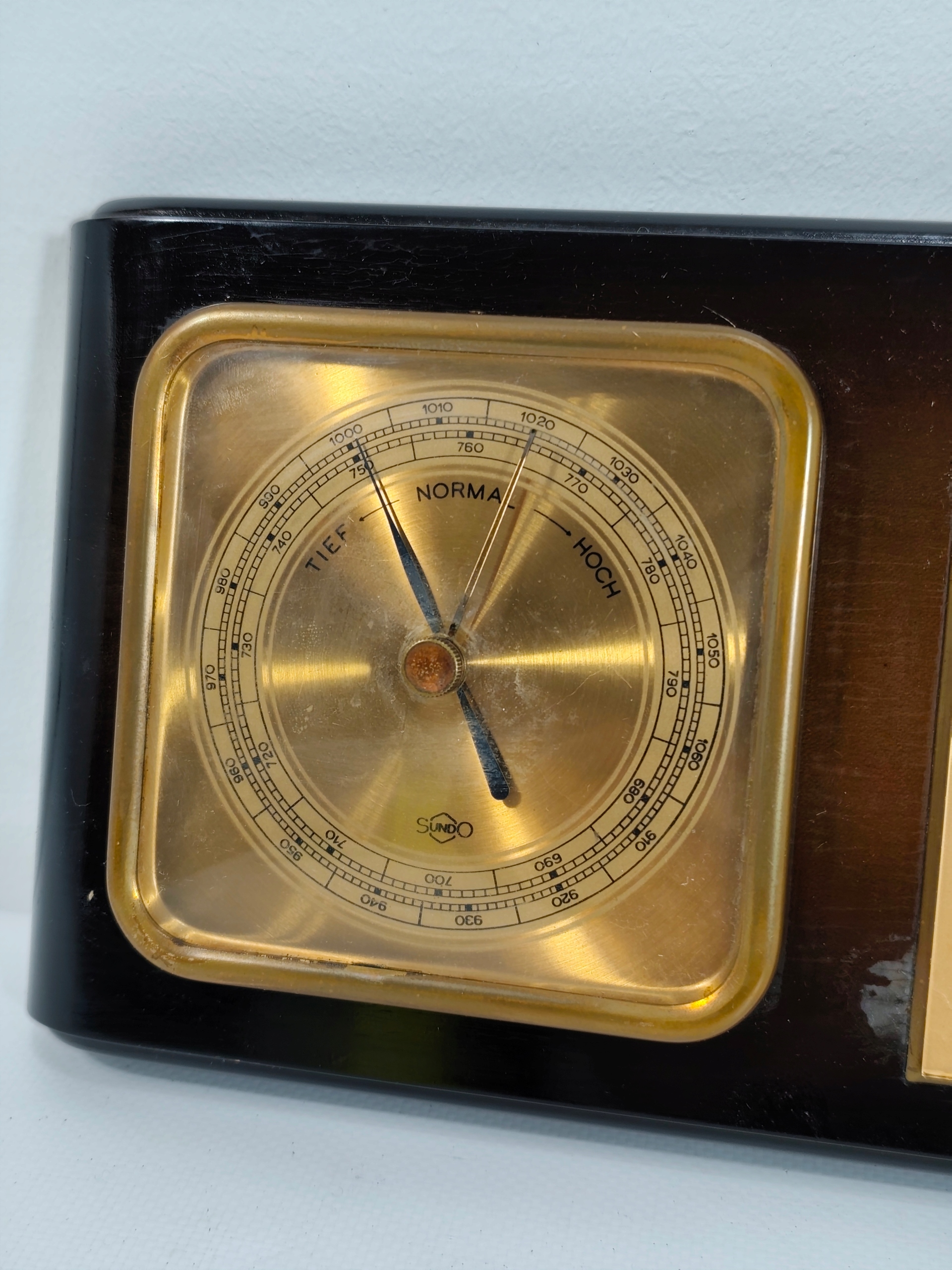 Лівий циферблат є барометром (атмосферний тиск, позначки німецькою мовою, наприклад «Normal», «Sturm» означає нормальні та штормові умови).