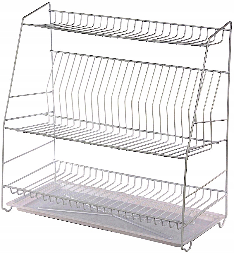 Практична сушарка, яку можна повісити або поставити на стільницю, оскільки вона має ніжки правильної форми. Сушарка додатково оснащена глибоким сідком (піддоном)з якого можна легко зливати воду, що стікає з вимитого посуду. Сушильна машина має 3 полиці, що означає багато місця для кухонного приладдя.