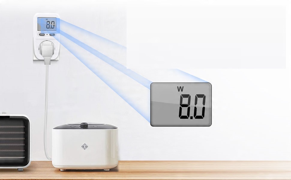 Вимірювання та обчислення споживання енергії та витрати на підключені пристрої допомагають ефективно заощадити електроенергію та гроші, перевіряє, чи має розетка функції захисту від вимкнення електроенергії. Лічильник енергії. Моніторинг часу, напруги, активної потужності, вартості енергії тощо