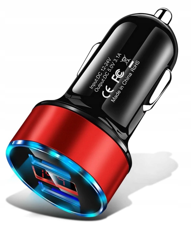 Універсальний компактний автомобільний зарядний пристрій USB зі світлодіодним підсвічуванням і вольтметром.