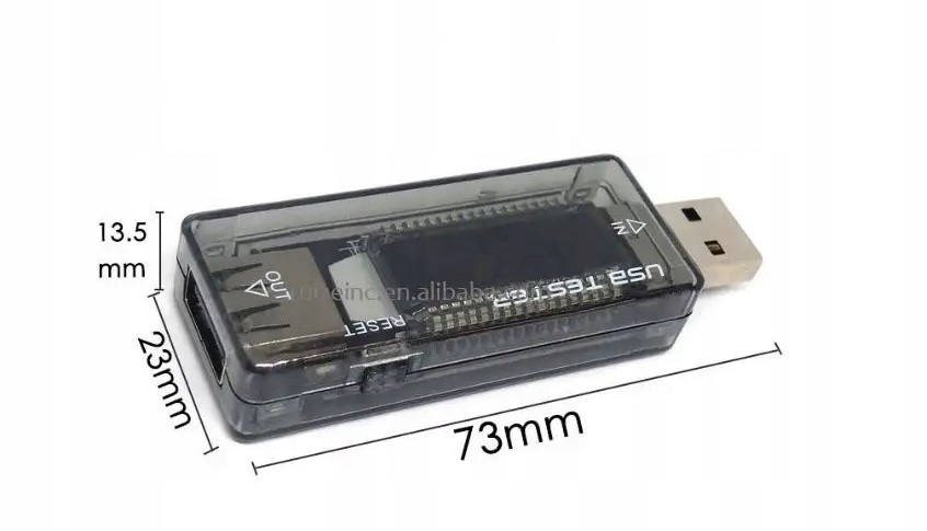 Вольтметр перевіряє споживання струму та напругу. Завдяки кнопці скидання ми можемо легко скинути вимірювання. Пємність заряджених батарейвідображається на екрані. Глюкометр має пам'ять, завдяки якій під час тестування телефону він буде зберігати вимірювання, поки ви не натиснете RESET.