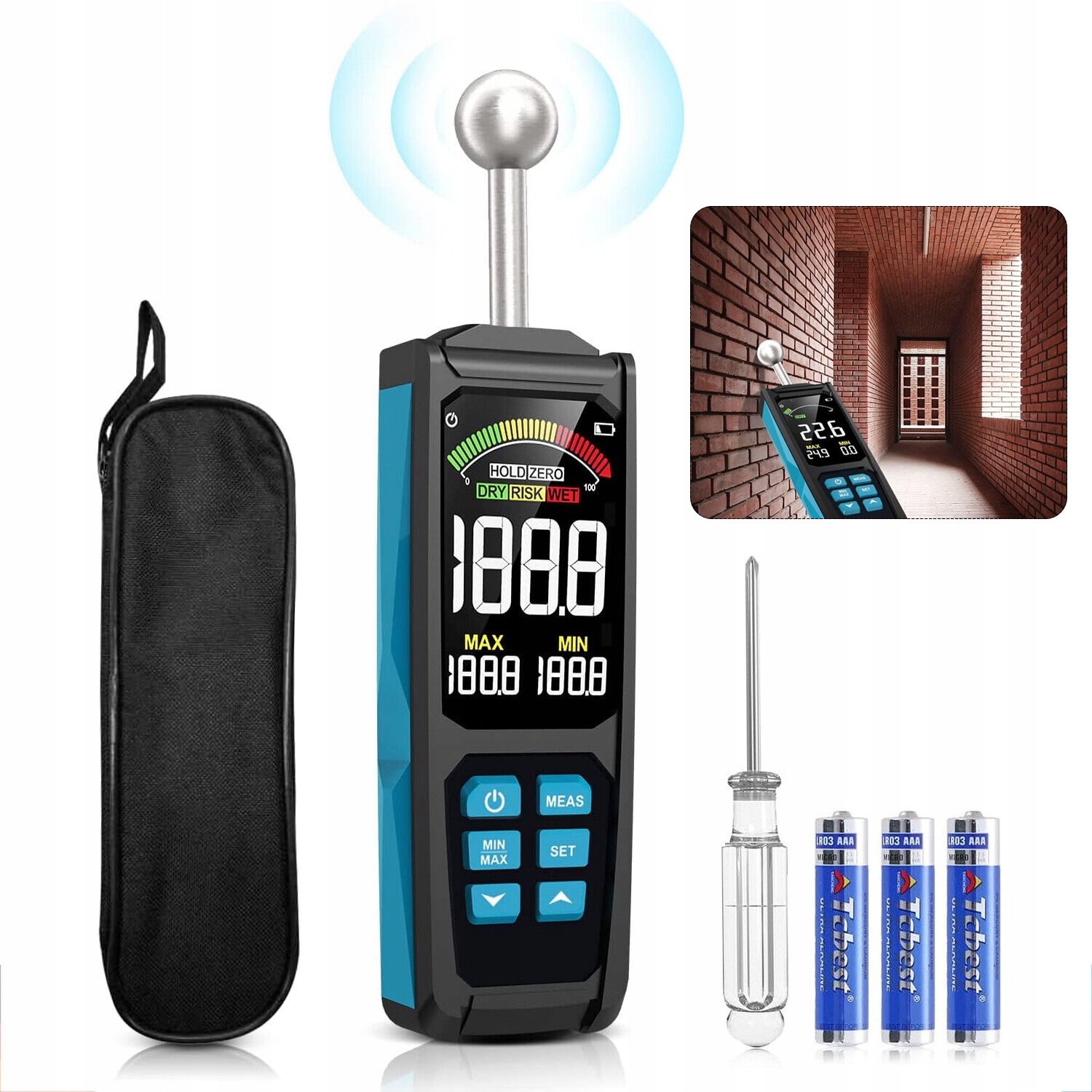 ⚡【 100% неінвазивне вимірювання 】⚡: Лічильник вологості випромінює хвилю з високою частотою, яка проникає в глибину стінки до глибини близько 40 мм, і вимірювання вологості ніколи не пошкоджує поверхню об'єкта. Зонд куля дозволяє користувачам легко вимірювати в тісних місцях, не залишаючи слідів, а також легко вимірювати вологість у кутах, на нерівних поверхнях та навколо плінтусних дощок.