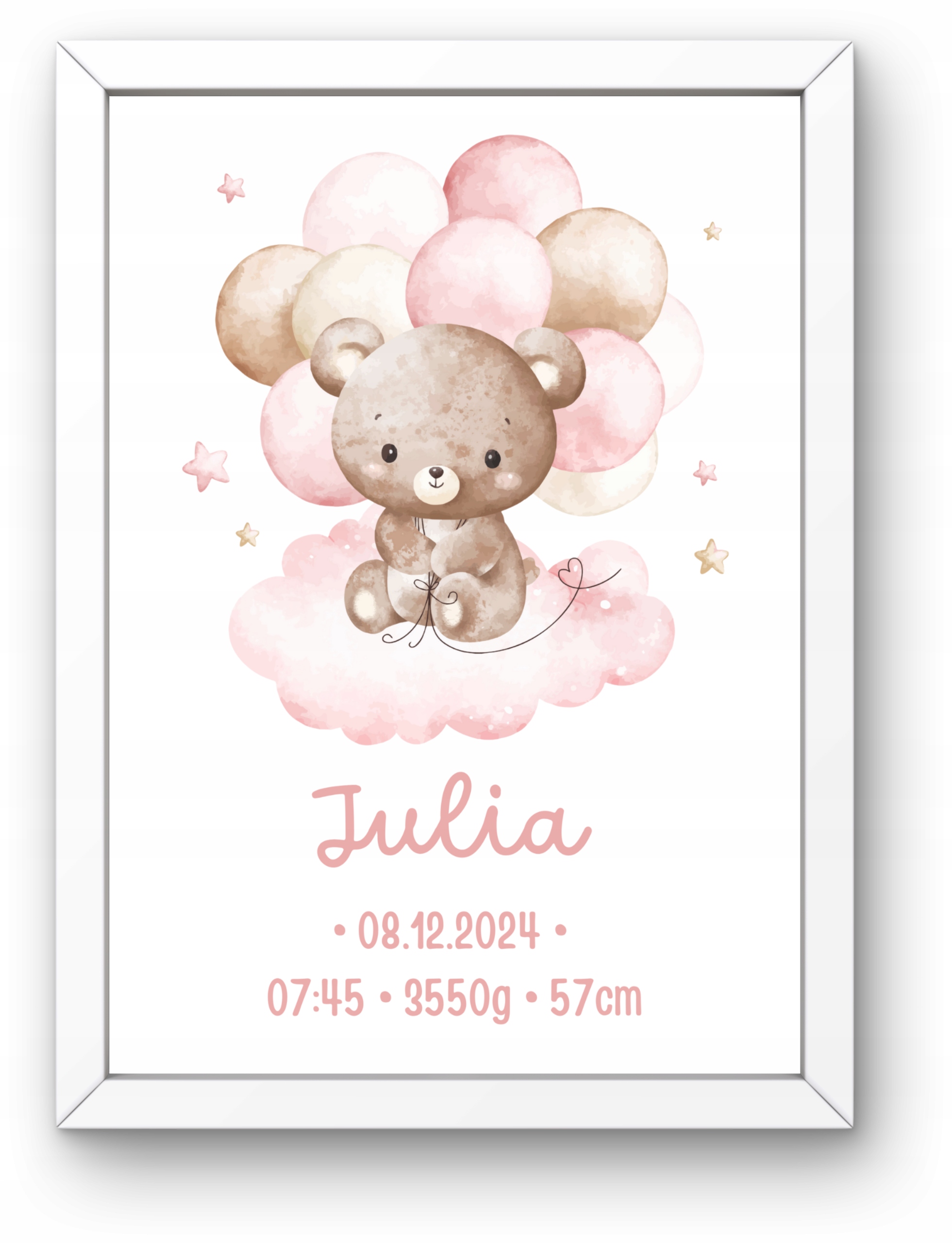 Метрична картина плакат A4 кадр сувенір на народження хрещення