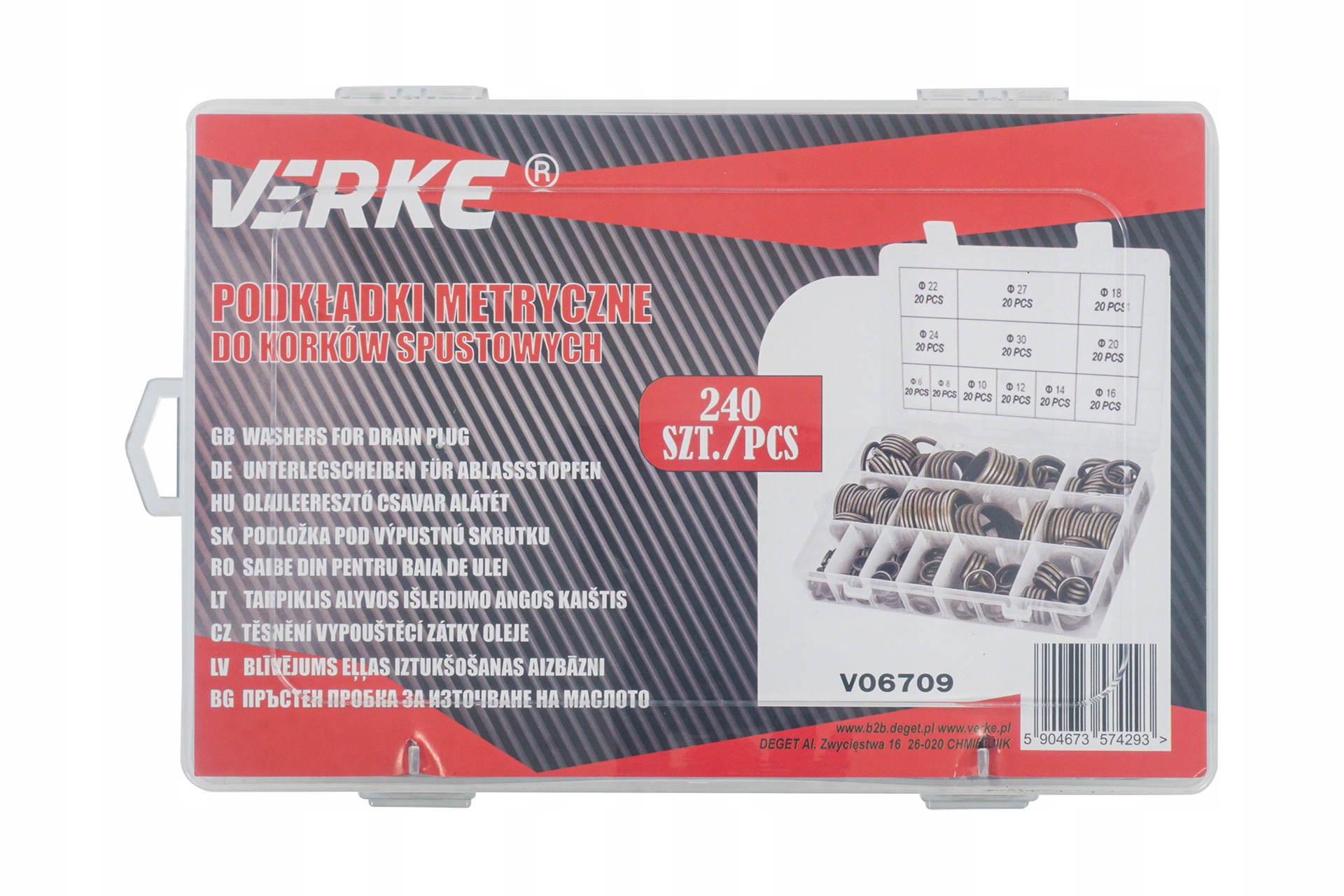 Набір з 300 шматочків алюмінієвих прокладок для пробок тригерних пробок Verke. Корисно в кожній майстерні автомобіля. Ціле упаковане в зручну пластикову коробку з відсіками, що забезпечують порядок та належні розміри сегрегації.