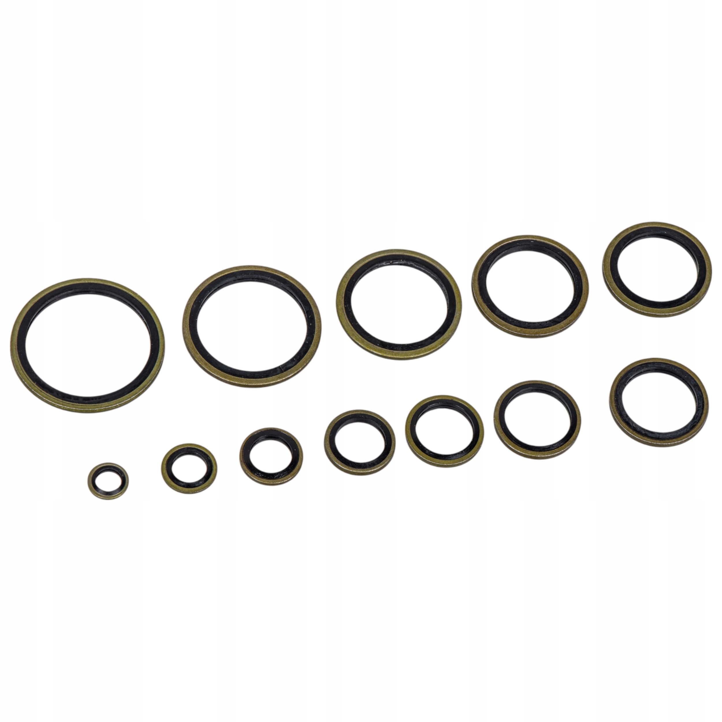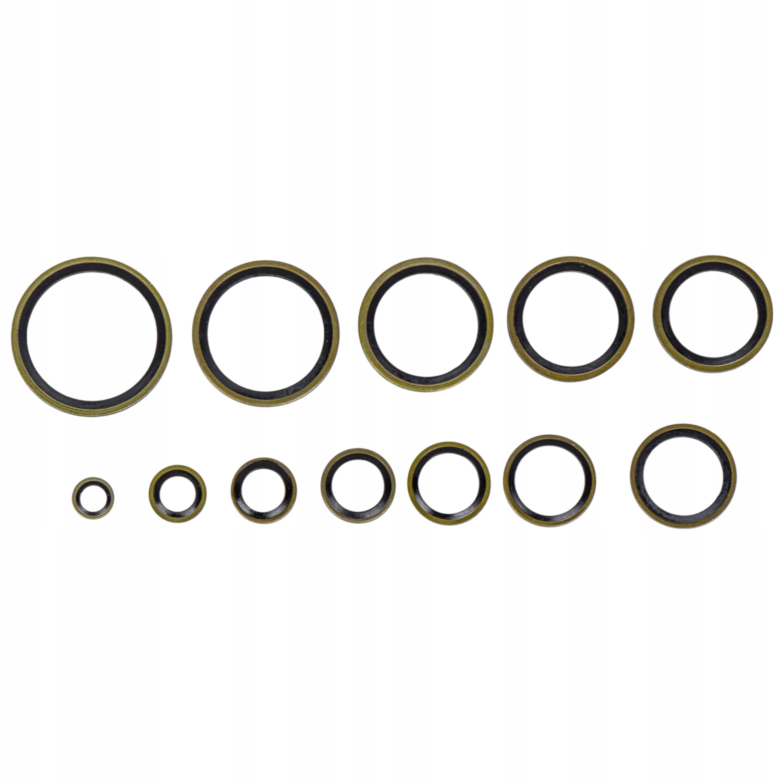 Набір металево-гумових ущільнювальних шайб розміром від M6 до M30.