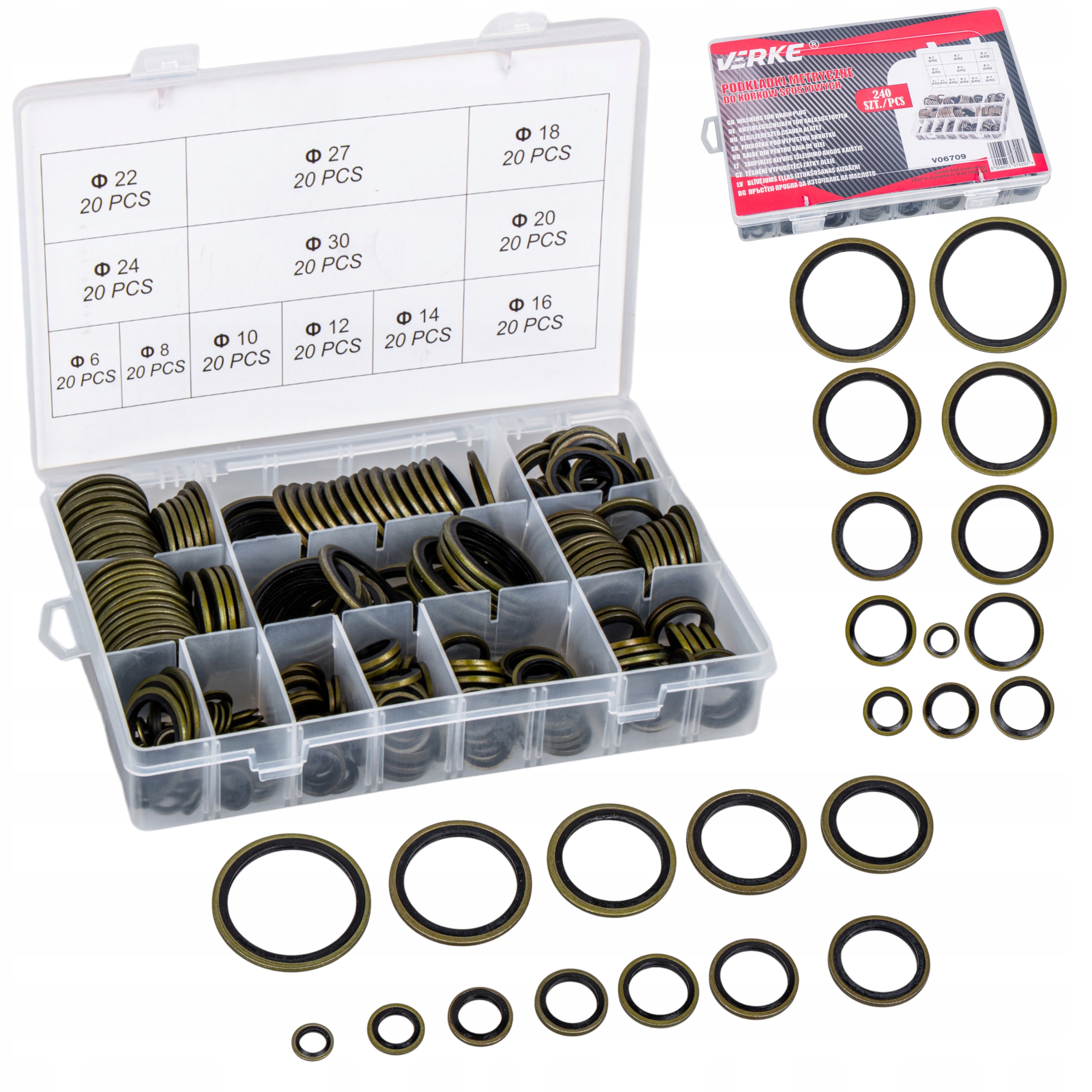 ⚙️ Шайби маслозливних пробок 240 шт. металева гумова метрика Verke⚙️