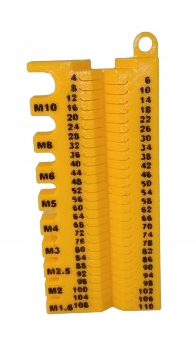 Калібр дозволяє вимірювати діаметри гвинтів: M10, M8, M6, M5, M4, M3, M2 .5, M2, M1.6