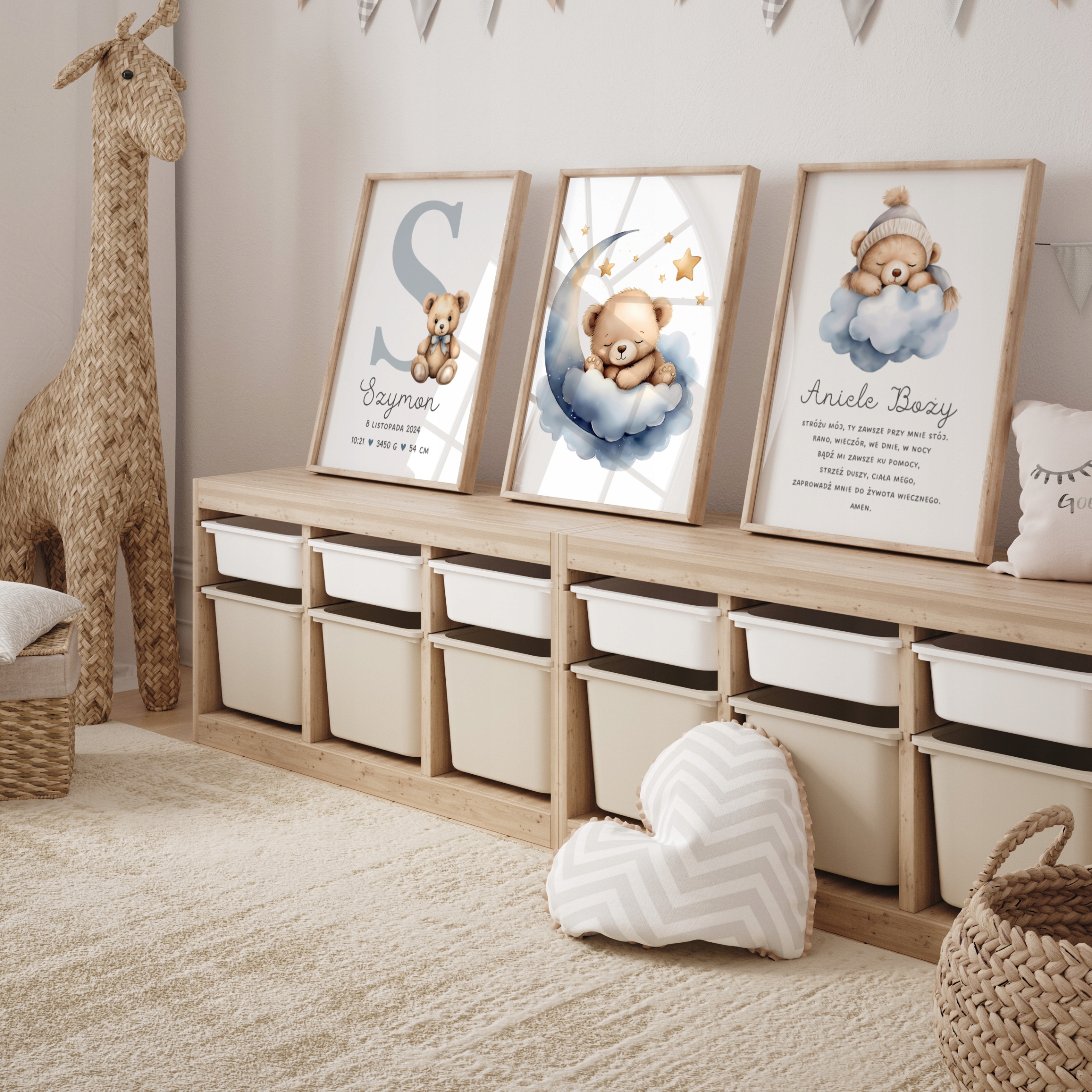 МЕТРИКА ДИТИНИ ВЕДМЕДИК МОЛИТВА АНГЕЛ БОЖИЙ 3 КАРТИНИ ДЛЯ КОМНАТИ ХЛОПЧИКА