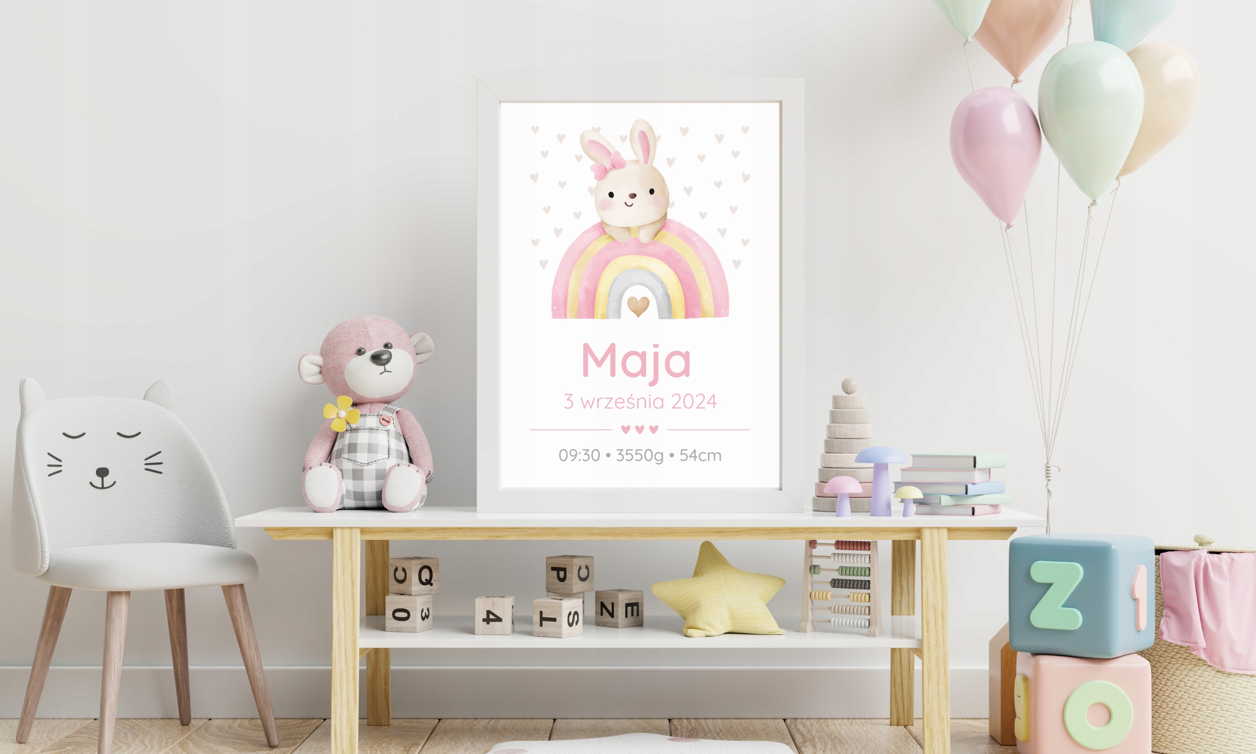 МЕТРИКА для дитини ПЛАКАТ РАМКА РІЗНІ ДИЗАЙНИ Народження Хрещення Річний вік