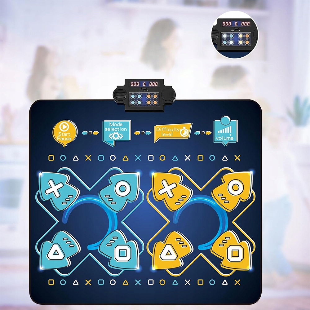 Наш танцювальний килимок пропонує 2 режими (режим одного гравця та режим PK для двох гравців) та 8 пісень. Режим одного гравця пропонує проблеми з 8 рівнів, тому ви можете вибрати продовження або повторення на 3 рівні складності (прості, нормальні, важкі) після кожного завоювання. Режим PK для двох гравців представляє різноманітність у гру завдяки 3 варіантам гри (PK з обмеженим часом, необмеженим ПК та режимом пам'яті).