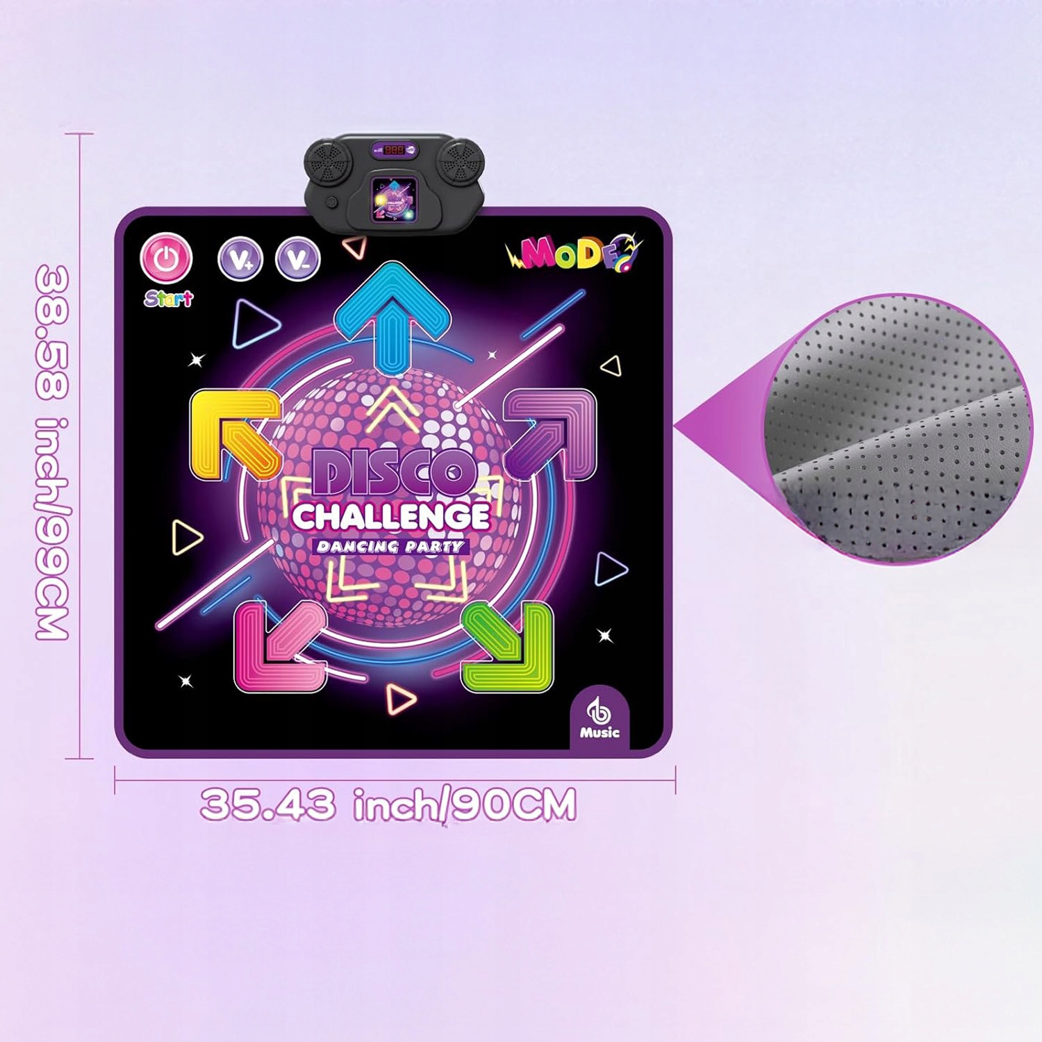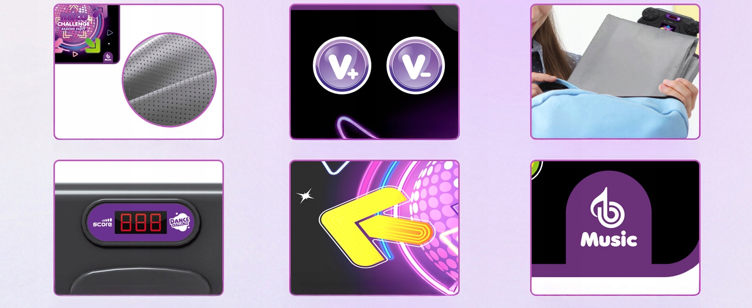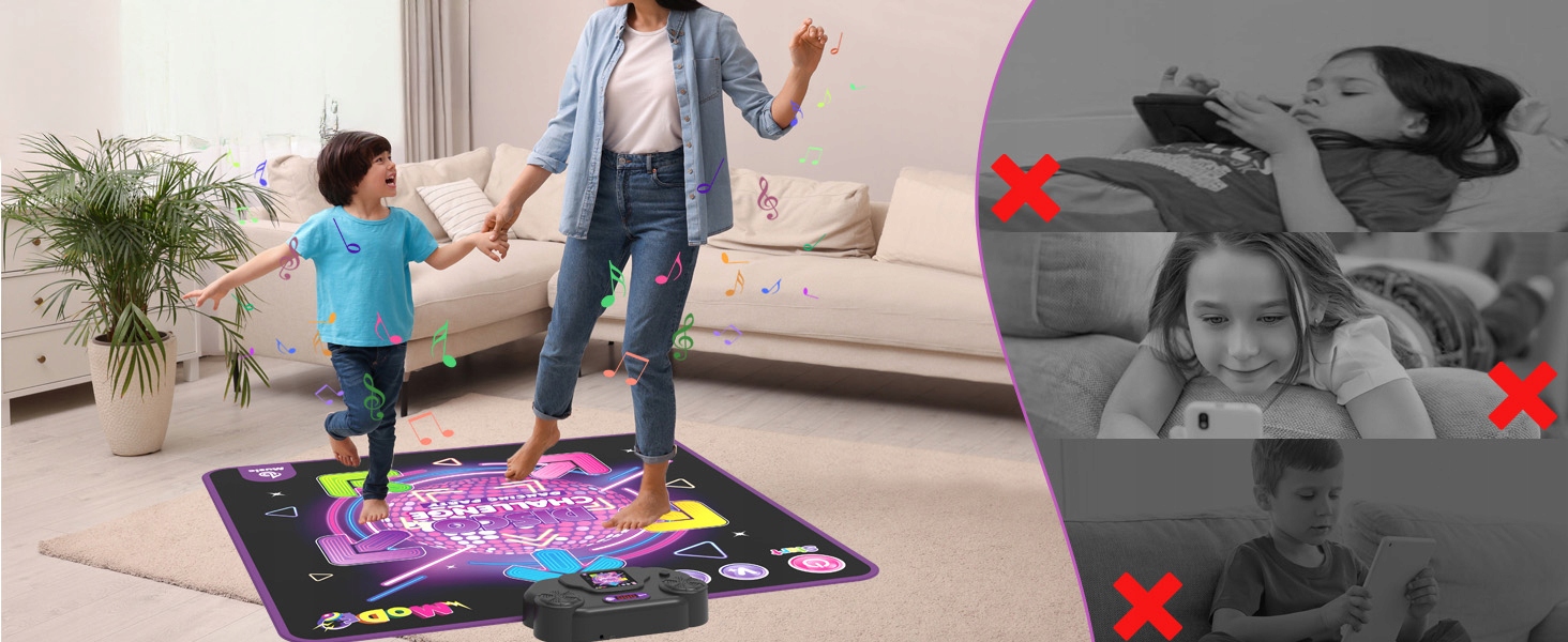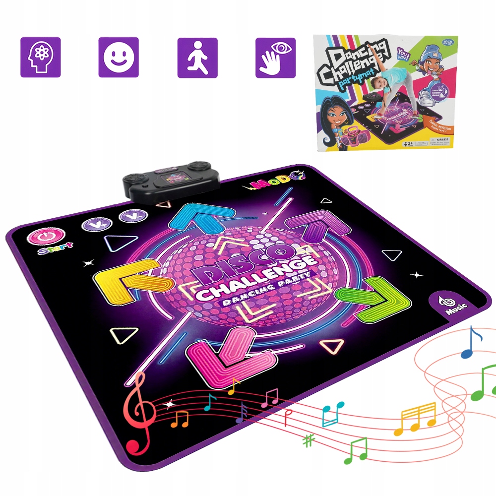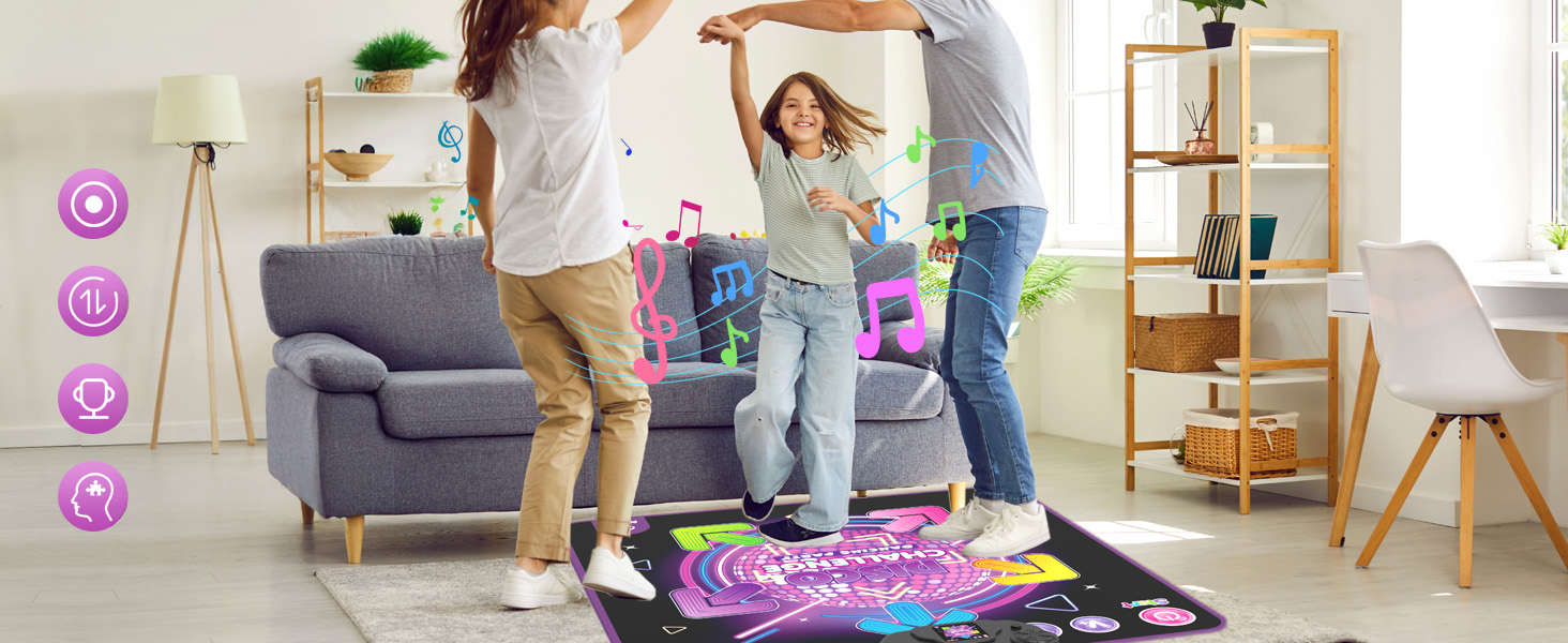 Танцювальний килимок пропонує чотири режими гри: за замовчуванням, гра, виклик та пам'ять. Пориньте себе в цю нову та захоплюючу танцювальну гру для дітей! Слідкуйте за ритмом побудованої музики та танцю до миготливих стріл. Поєднання танцю та музики розвиває рівновагу дитини та покращує його імунітет.