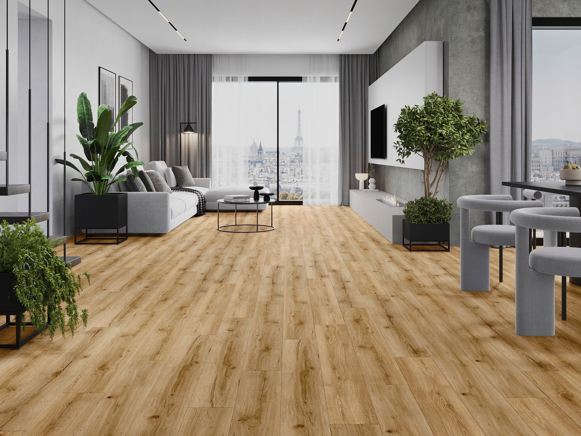Зразок вінілових панелей Mexen Beaver Creek 1240 x 182 мм, SPC 6,5 мм, ґрунтовка IXPE 1,5 мм, 4 V-Froute, дуб