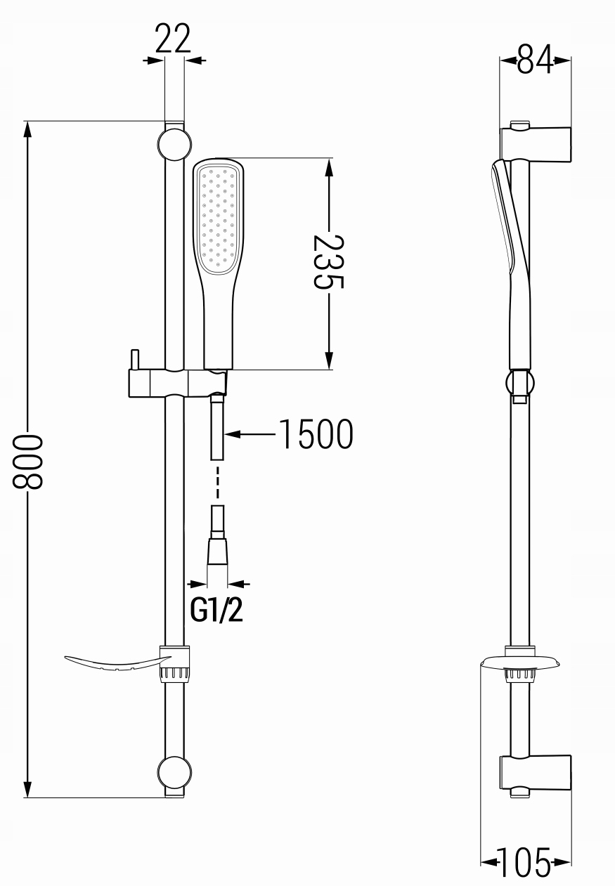 Душова гарнітура Mexen DF49 зі штангою, трубкою, шлангом і мильницею, хром
