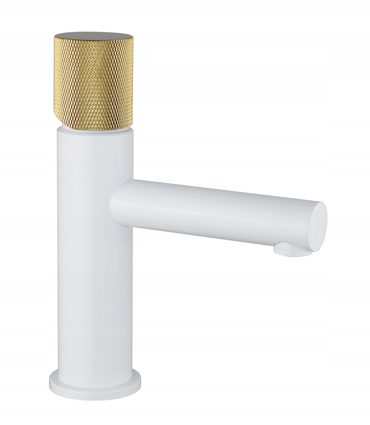 Mexen Elba One - низький біло-золотий змішувач для умивальника