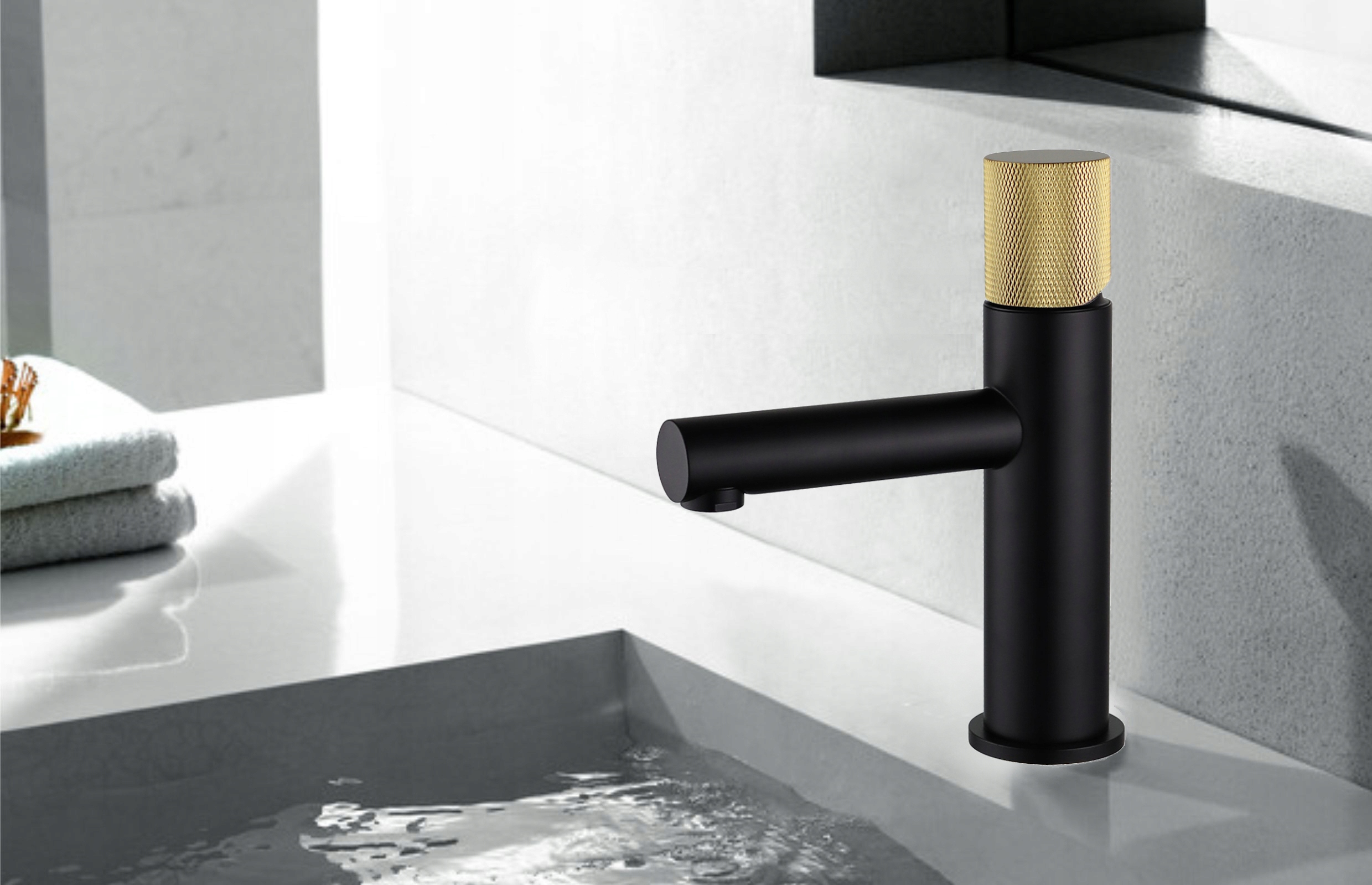 Mexen Elba One - низький змішувач для умивальника, чорно-золотий