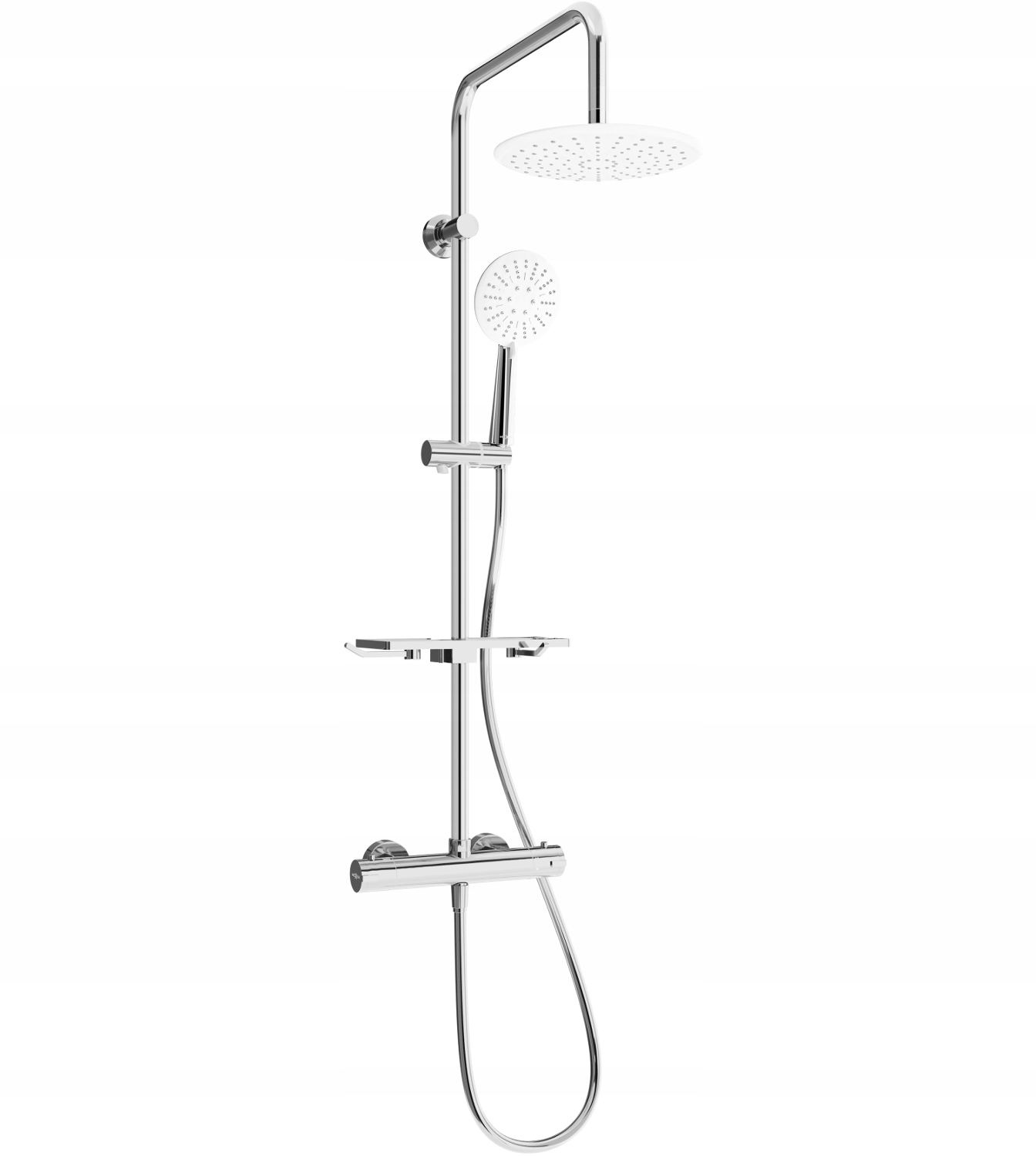 Душова колонка Mexen KT67 з регульованою ручкою, шлангом, тропічним душем, ручкою, мильницею та термостатичним краном, хром/білий