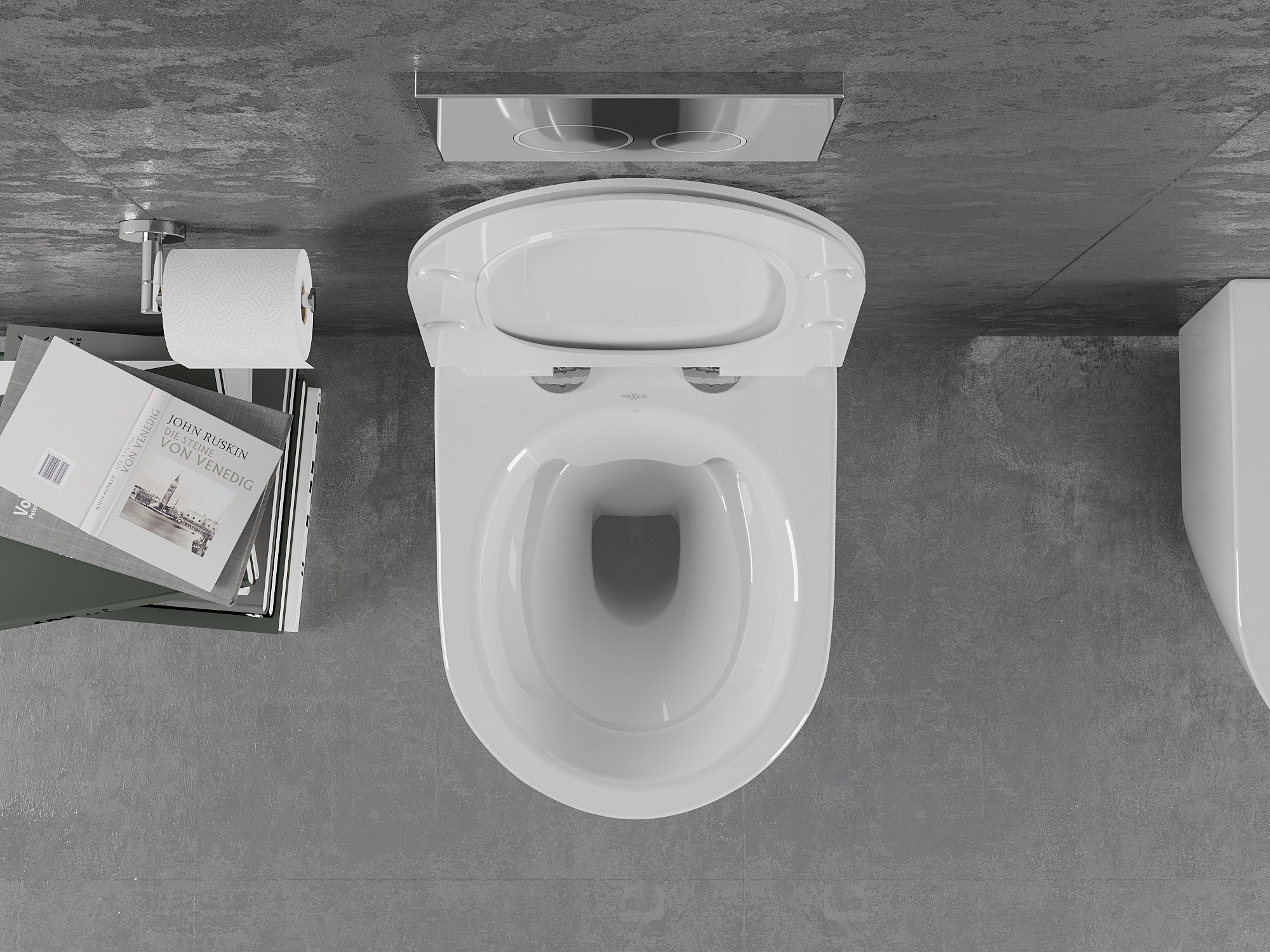 - Технологія без оправ забезпечує вільний потік води по всій камері, що полегшує утримання унітазу в чистоті.