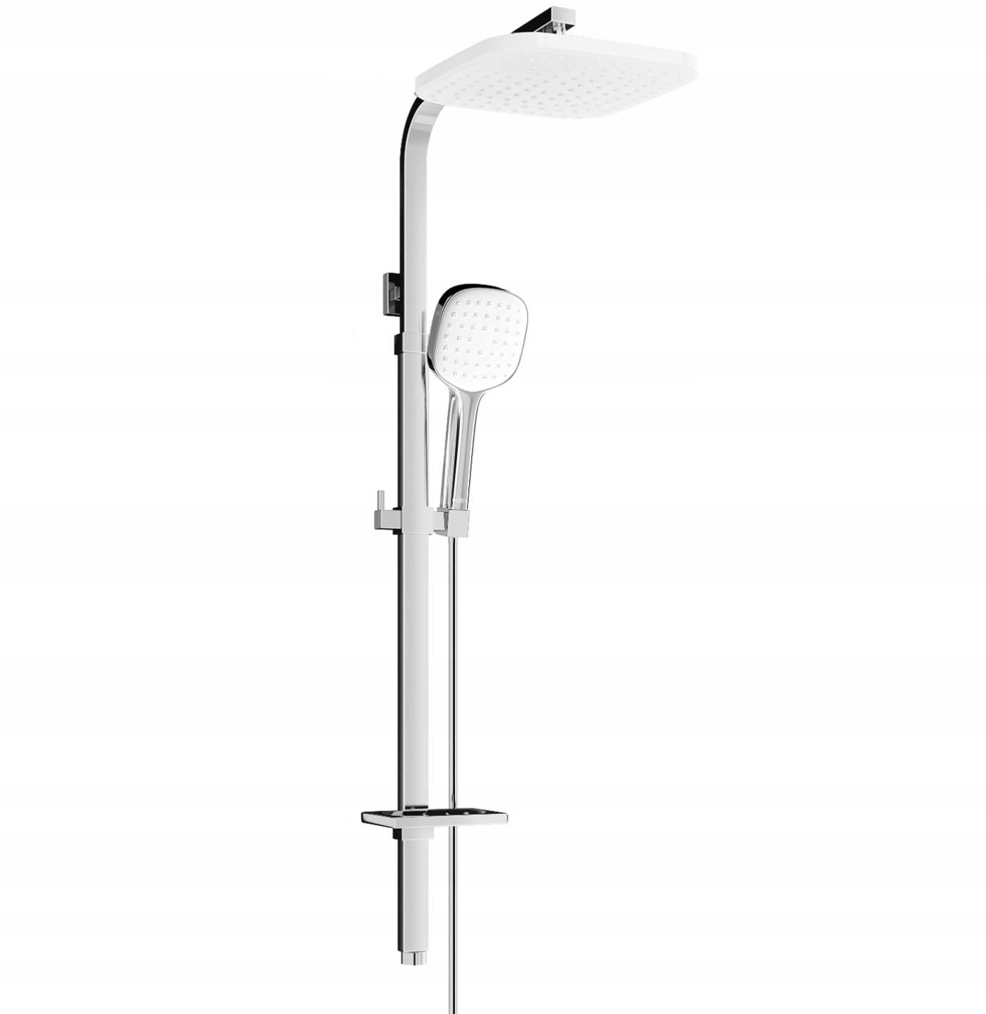 Душова колонка Mexen Q33 з регульованою ручкою, шлангом, тропічним душем, ручкою та мильницею, хром/білий