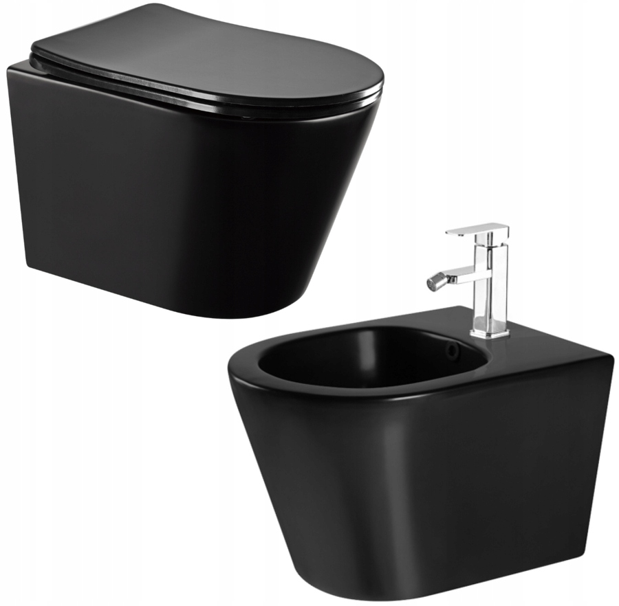 Унітаз Mexen Rico Rimless + сидіння з плавним закриттям + біде, чорний матовий