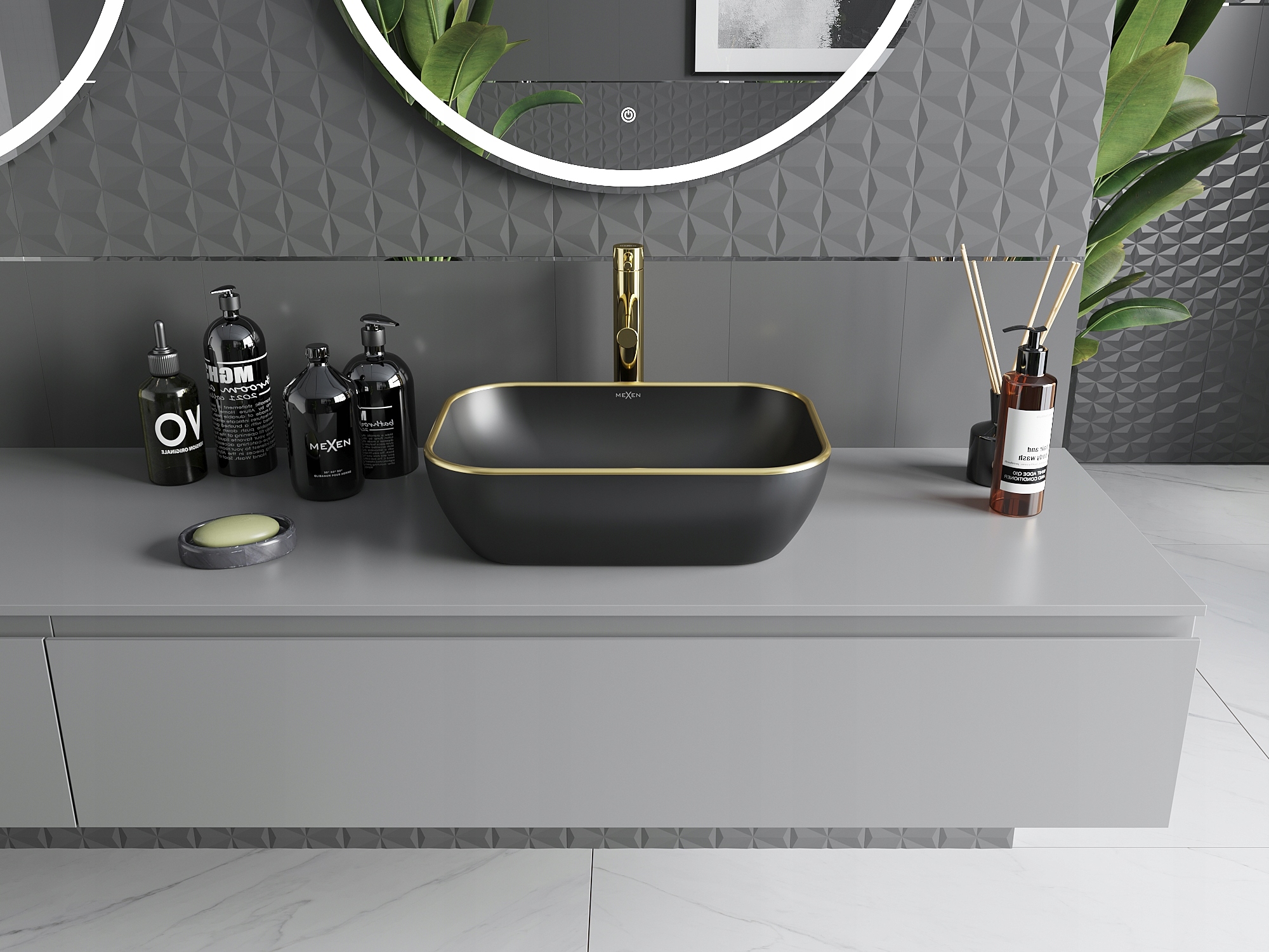 MEXEN RITA НАСТІЛЬНИЙ РУКОЇВНИК 45 х 32 СМ МАТОВЕ ЧОРНЕ ЗОЛОТО РАНТ