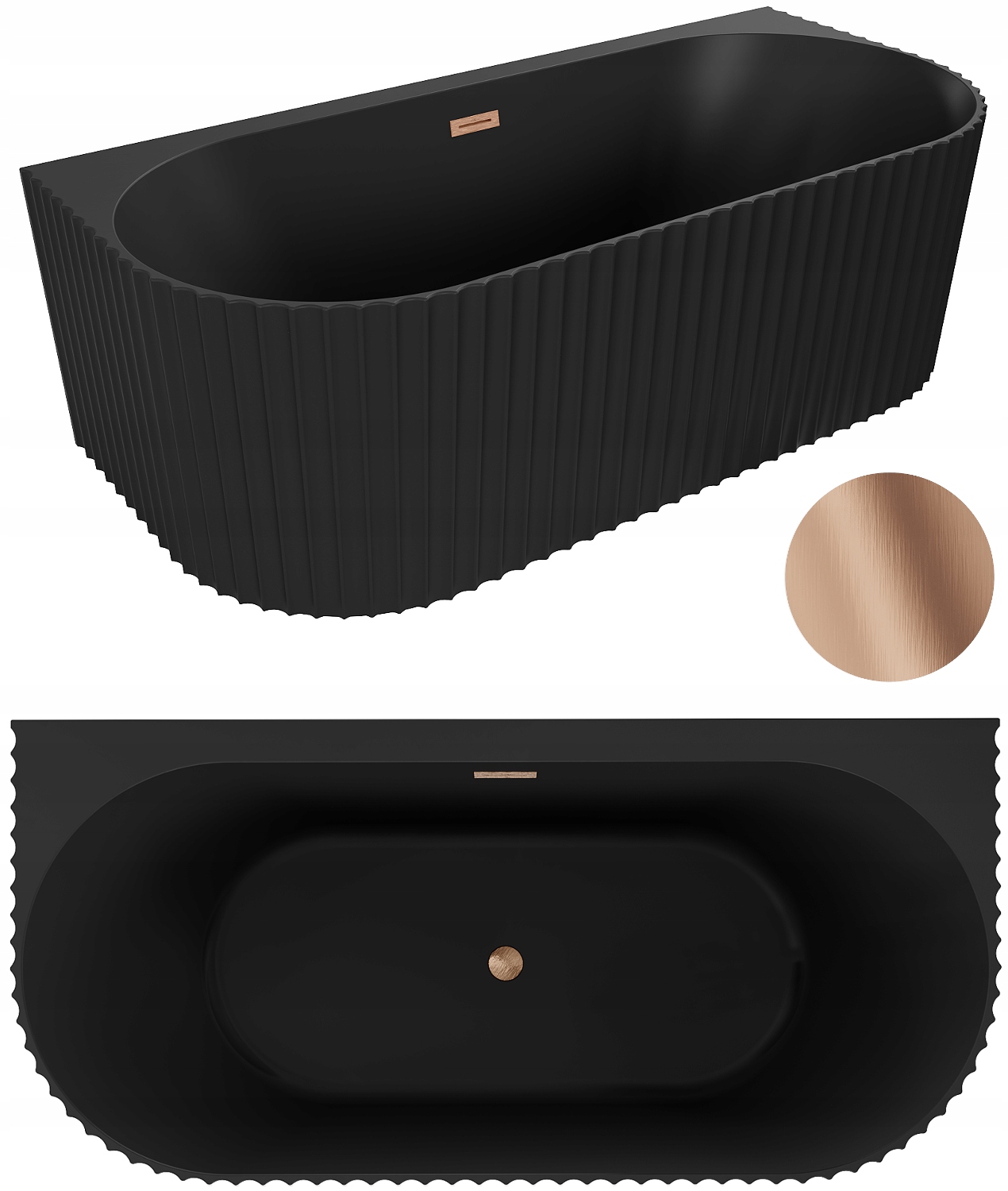 Окремо стояча настінна ванна Mexen Sella з рифленням 170 x 80 см, чорний матовий, перелив із матової міді