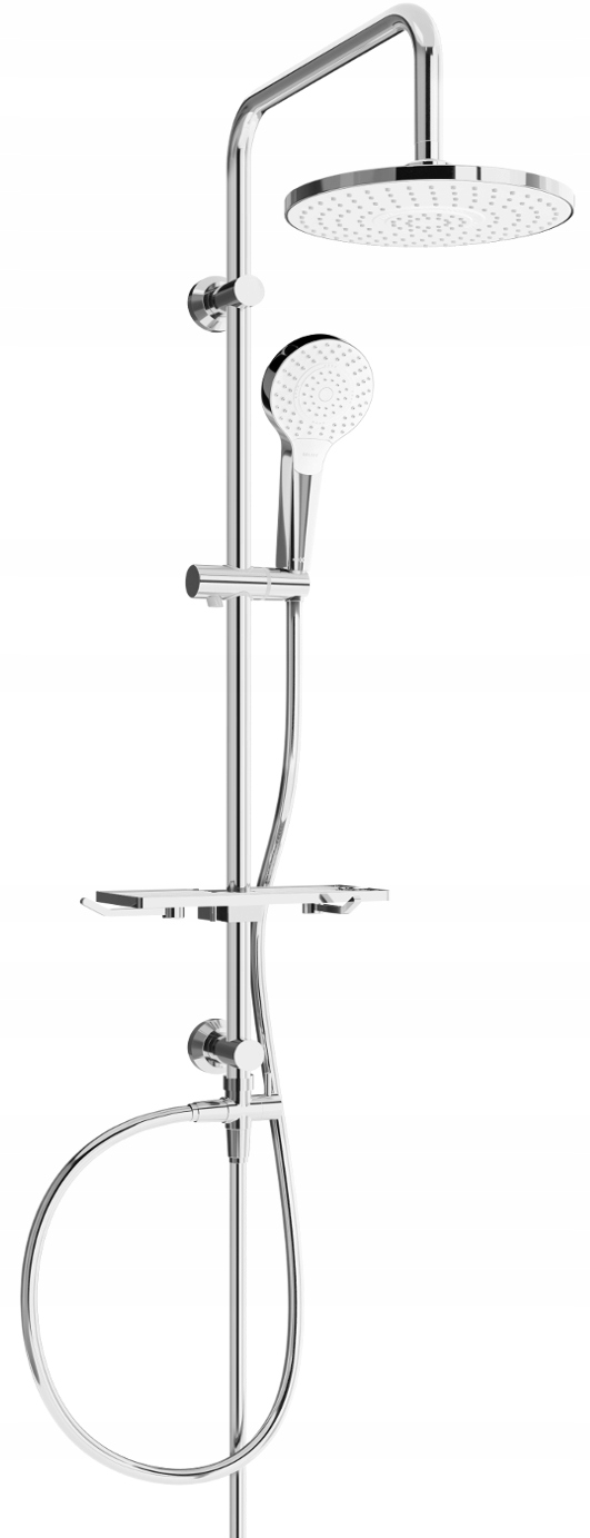 Душова колонка Mexen T05 з регульованою ручкою, шлангом, тропічним душем, ручкою та мильницею, хром/білий