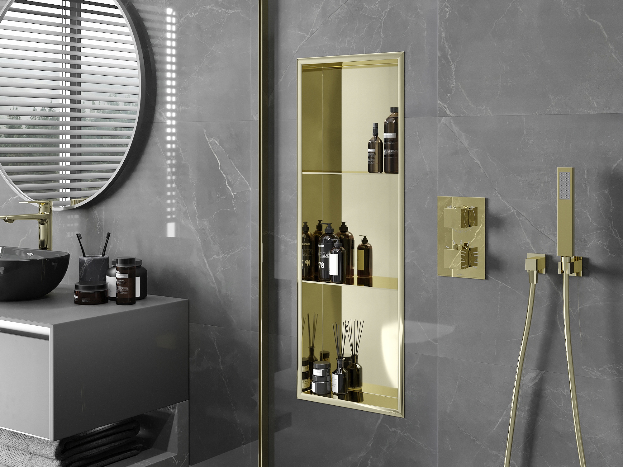 Мексен X-Wall-R врізна полиця з коміром і полицею 90 х 30 см, золото