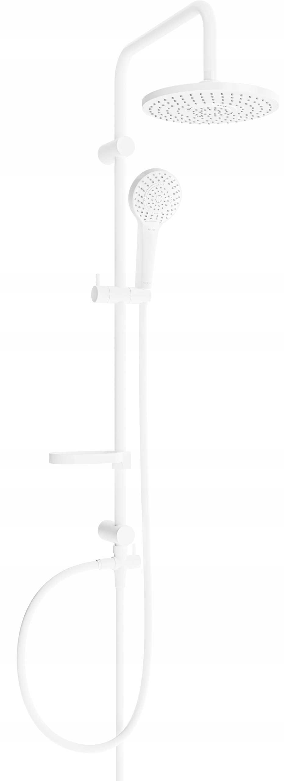 Душова колонка Mexen X05 з регульованою ручкою, шлангом, тропічним душем, ручкою та мильницею, біла