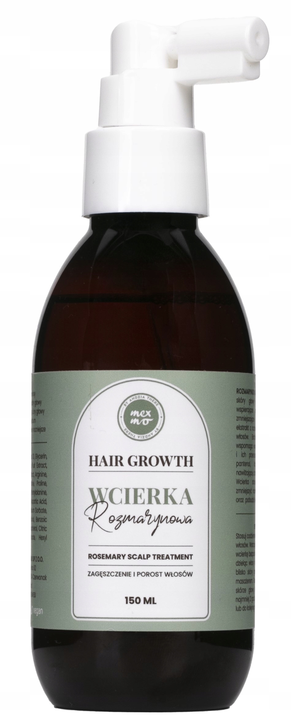 Зростання волосся - лікування шкіри голови від MEXMO. шкіра голови. Він має веганську та композицію, сумісну з філософією. Ефективно стимулює лампочки волосся до збільшення та набагато швидшого росту та регенерації. Він базує свою дію на основі спеціально вибраних діючих інгредієнтів: екстракт розмарину та долону суботу з додаванням пантенолу та амінокислот. Стимулює кровообіг і зміцнює волосся з коренів до кінців. Використовується регулярно, це викликає розливу "дитячого волосся", а також підтримує боротьбу з надмірно падінням волосся. Крім того, косметика заспокоює роздратування та покращує еластичність, тим самим запобігаючи їх крихкості та механічному пошкодженню. Рума робить смуги товстішими, сильнішими та сповнені здорового сяйва. Косметика доступна з ємністю 150 мл.