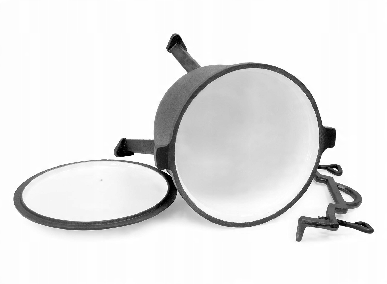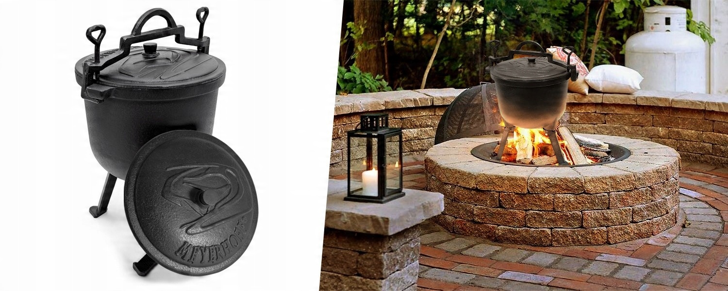 Оригінальний котел Meyerhoffвиготовлений з чавунного сплаву найвищої якості, стійкого до найвищих температур. Ця компанія першою застосувала спеціальний вентиляційний отвір у кришці, який регулює тиск всередині казана, що робить його 100% безпечним. Всередині покрита термостійкою емаллю, яка захищає і оберігає внутрішню частину казана, що полегшує його миття і догляд (не потрібно просочувати після кожного використання). Казан можна стояти прямо на вогні, а завдяки зручній ручці його можна також підвісити над вогнем. Виріб також має роз'ємні ніжки, тому казан можна поставити в камін або прямо у вогнище. Завдяки тисненню на обкладинці ви можете бути впевнені, що купуєте оригінальний і безпечний продукт.