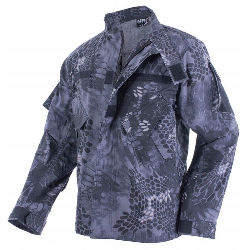 високоякісна польова сорочка місії з військовою специфікацією . Виготовлений з бавовни та нейлону. Це поєднання тканин забезпечує довговічність, стійкість до сліз і стирання матеріалу. Вся справа кріпиться двосторонньою блискавкою з липучкою. Толстовка оснащена 6-кимковою системою . 2 розміщували по діагоналі навколо грудей, ще 2 на рукавах, і 2 під руками. На всій поверхні куртки ви знайдете численні панелі липучки , до яких можна прикріпити мітки.
