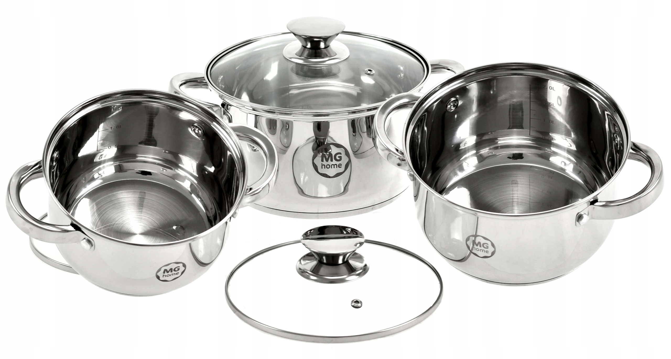 MG HOME VERSO НАБІР 3 КАСТРУШКИ 6 ЕЛЕМЕНТІВ СТАЛЬ INOX НАБІР ІНДУКЦІЯ