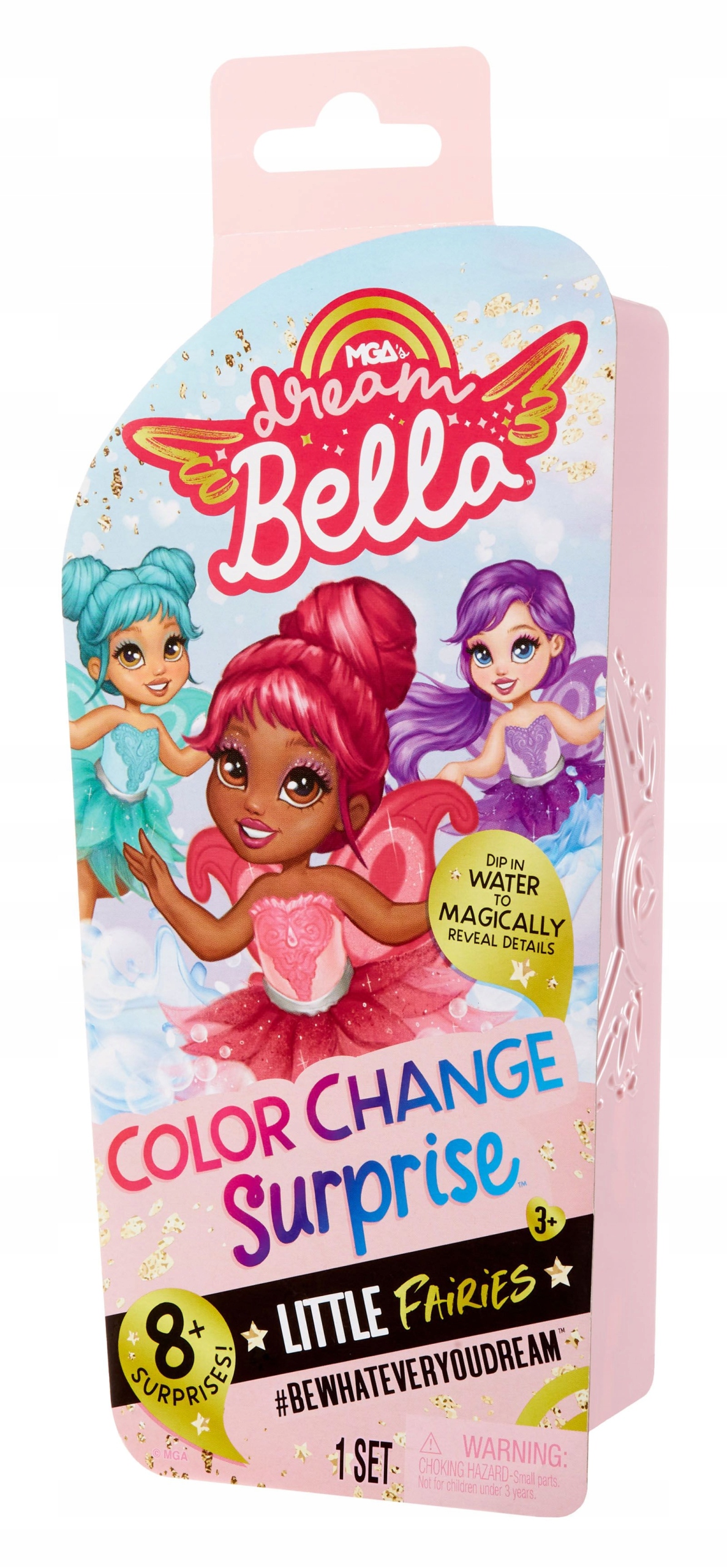 DreamBella — молодша сестра DreamElla. Ляльки Dream Bella Colour Change Surprise Fairies від MGA забезпечують розпакування, повне сюрпризів! Кожен пакет містить ляльку-одягач, але зовнішній вигляд кожної ляльки залишається таємницею, доки її не розкриють у грі зі зміною кольору. Потім дівчата відкриють для себе чарівну ляльку з перукою, крилами, черевиками та спідницями.