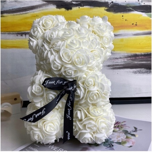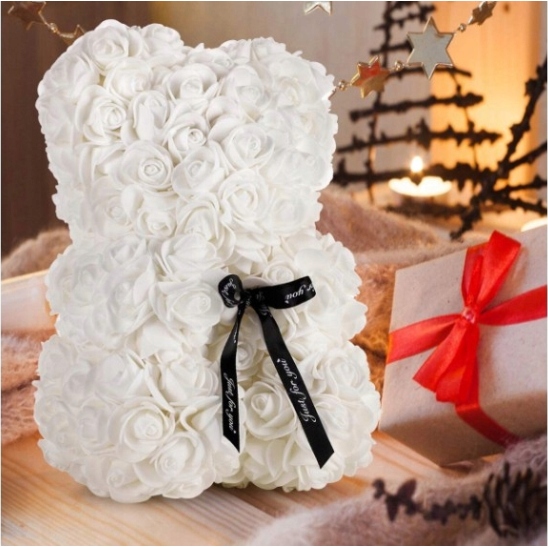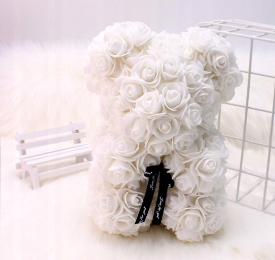 MIŚ Z RÓŻ PREZENT ROSE BEAR WHITE PREZENT NA DZIEŃ MATKI