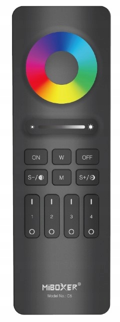 miboxer c5 - це сучасний, посібник дистанційне управління світлодіодним освітленням RGB + CCT (повноцінний + регульований білий). Підтримки 4 незалежні зони , пропонує затемнення , зміна кольору , температура світла та готові динамічні режими. Бездротово спілкується в 2,4 ГГц RF .