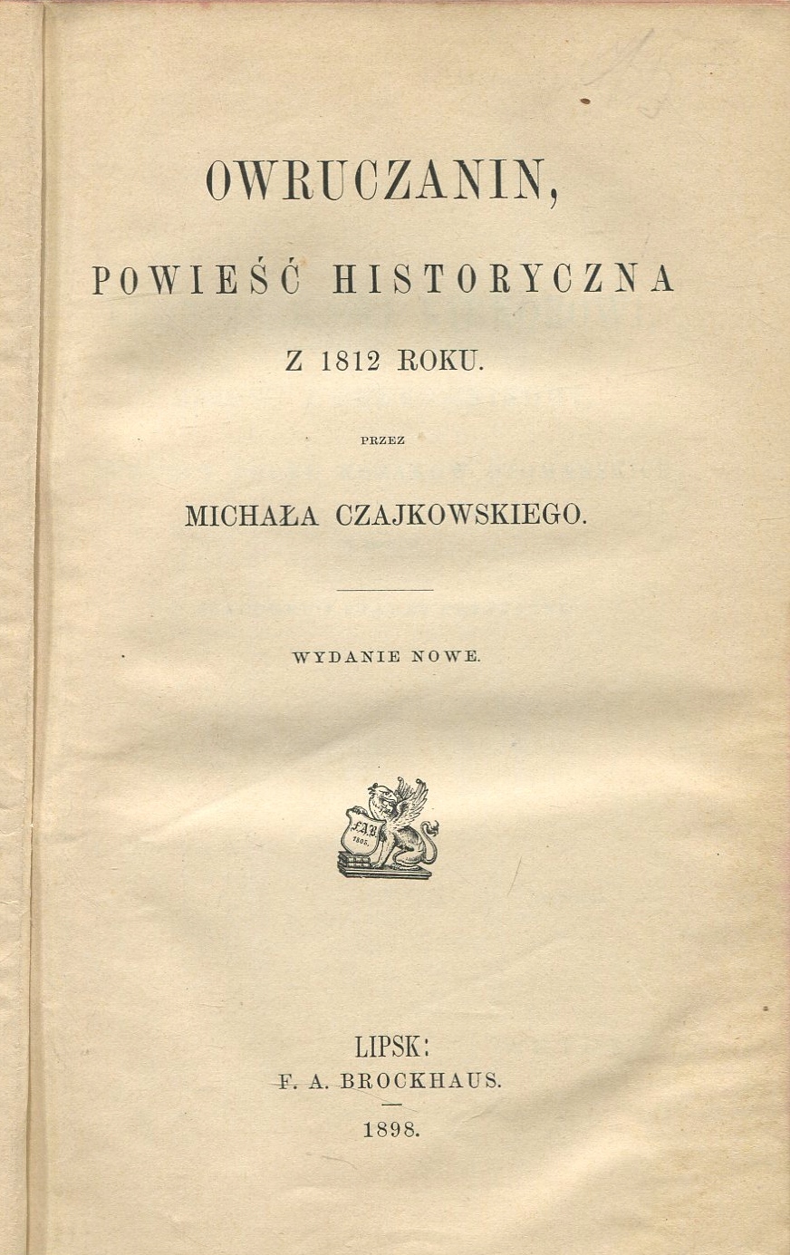 Michał Czajkowski Owrczanin роман з 1812 р. Лейпциг 1898 р. Брокхаус
