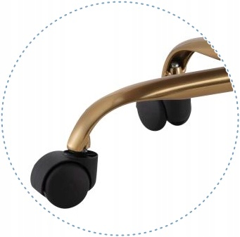 Michel має золотисту, хромовану основу з колесами для м’яких поверхонь, таких як килим, що є популярним вибором для людей, які шукають елегантне та стильне рішення для офісу, домашнього офісу чи іншого місця для роботи або відпочинку. Цей дизайн дозволяє поєднати функціональність з естетикою, додаючи інтер’єру нотку розкоші.