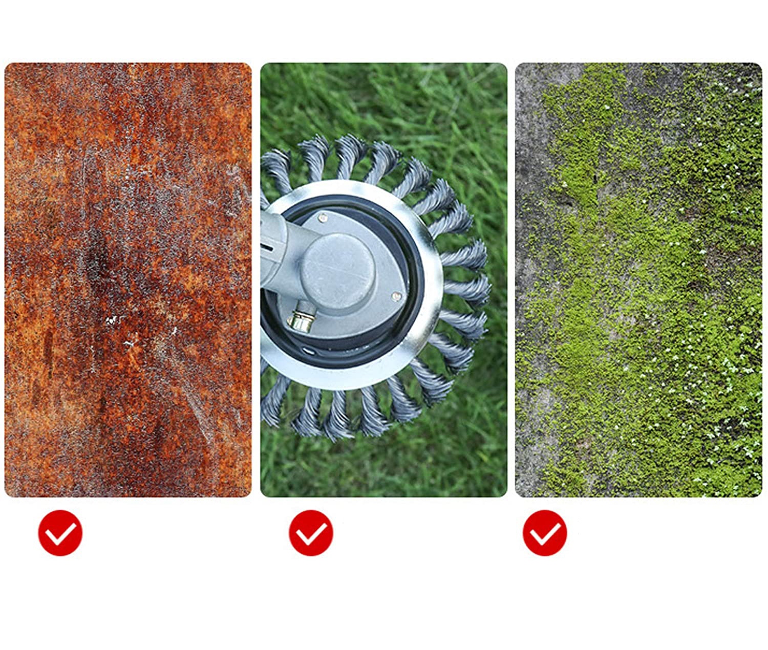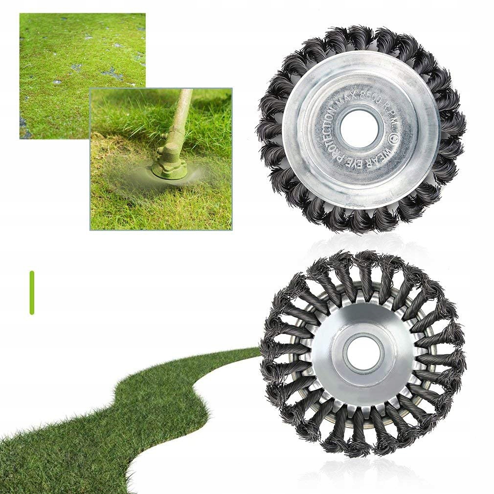 ВИСОКОЯКІСНІ ТРИММЕРИ: щітка зі крученими спицями виготовлена з двошарових потовщених дисків з нержавіючої сталі та зносостійкого 10-мм пружинного сталевого дроту, який є міцним і довговічним. Дріт непросто відпасти. Все ще працює при попаданні на каміння та грудки
