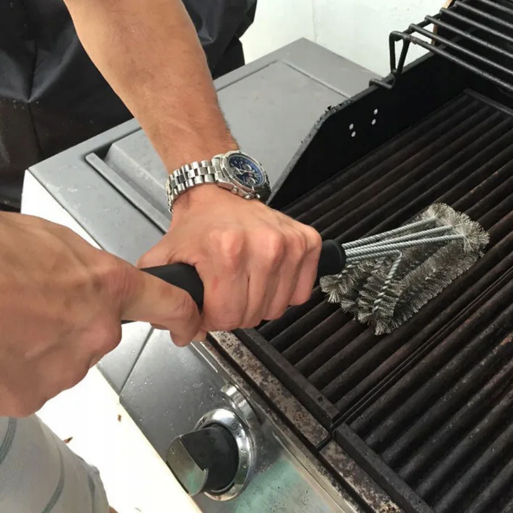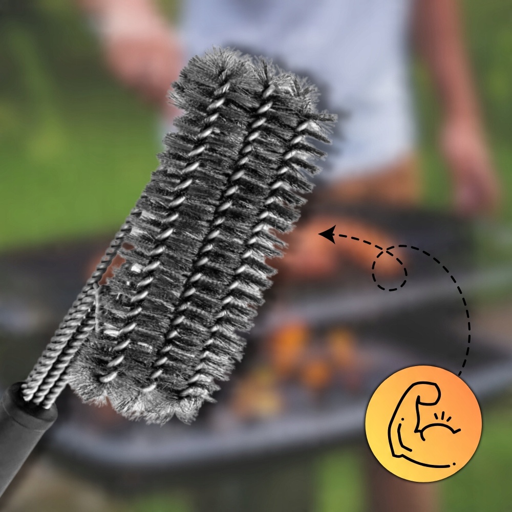 ✅ Представляємо щітку для чищення, яка є ідеальним засобом для ефективного чищення грилів. Ця щітка поєднує в собі три 15-сантиметрові щітки з нержавіючої сталі, щоб створити потужний інструмент, який робить очищення вашого гриля швидким і легким.