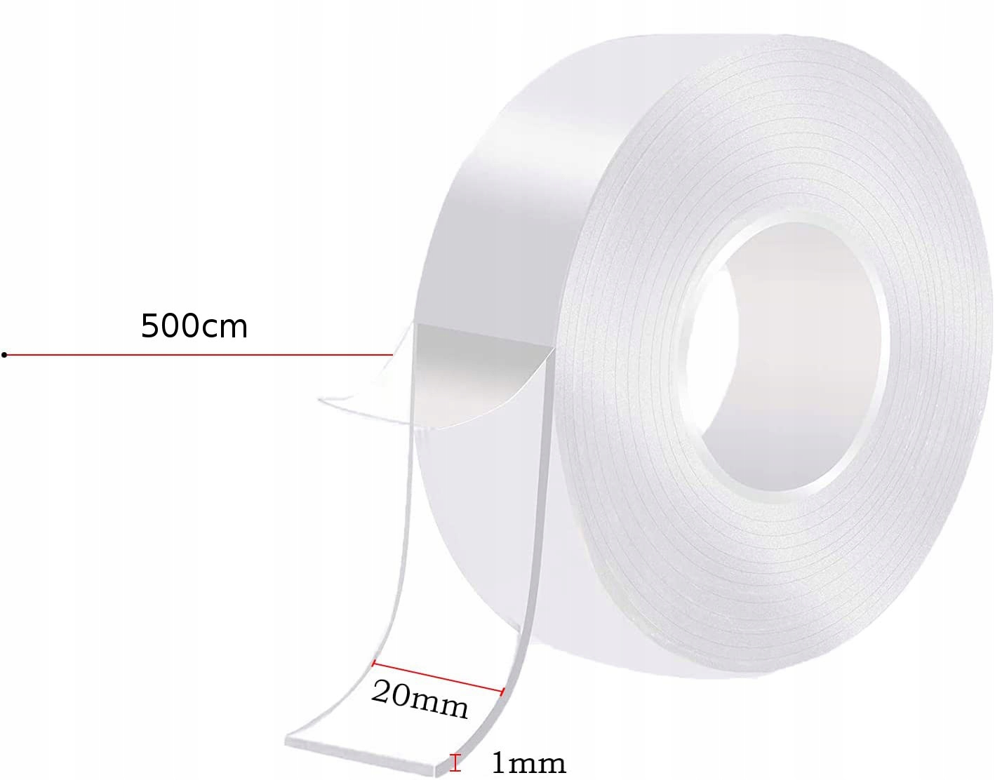 Прозора нанострічка — це двостороння багаторазова стрічка. Коли він забрудниться, просто вимийте його та висушіть, щоб відновити його клейкі властивості. Не залишає слідів. Підходить для гладких і непористих поверхонь.